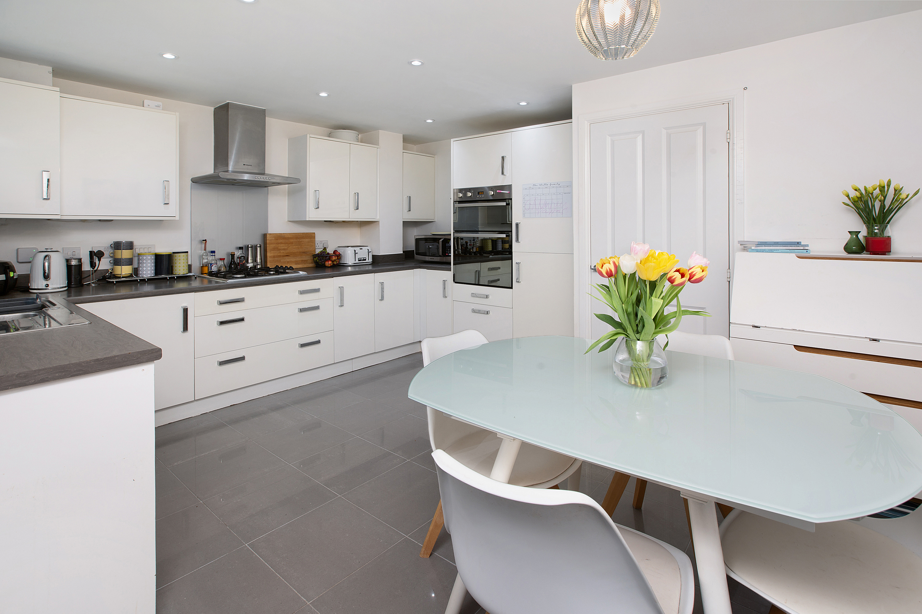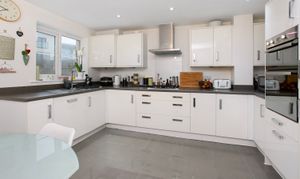 Ascending the stairs to the first floor landing there are doors leading to the lounge and kitchen/diner and stairs to the second floor. The lounge is a fabulous light room with a window and door leading out to the balcony with spectacular views across the estuary and out to sea. The kitchen/diner has doors leading out to the rear garden and is fitted with a range of wall and base mounted units, inset stainless steel sink, gas hob with extractor hood over, eye level double oven, fridge/freezer and dishwasher.