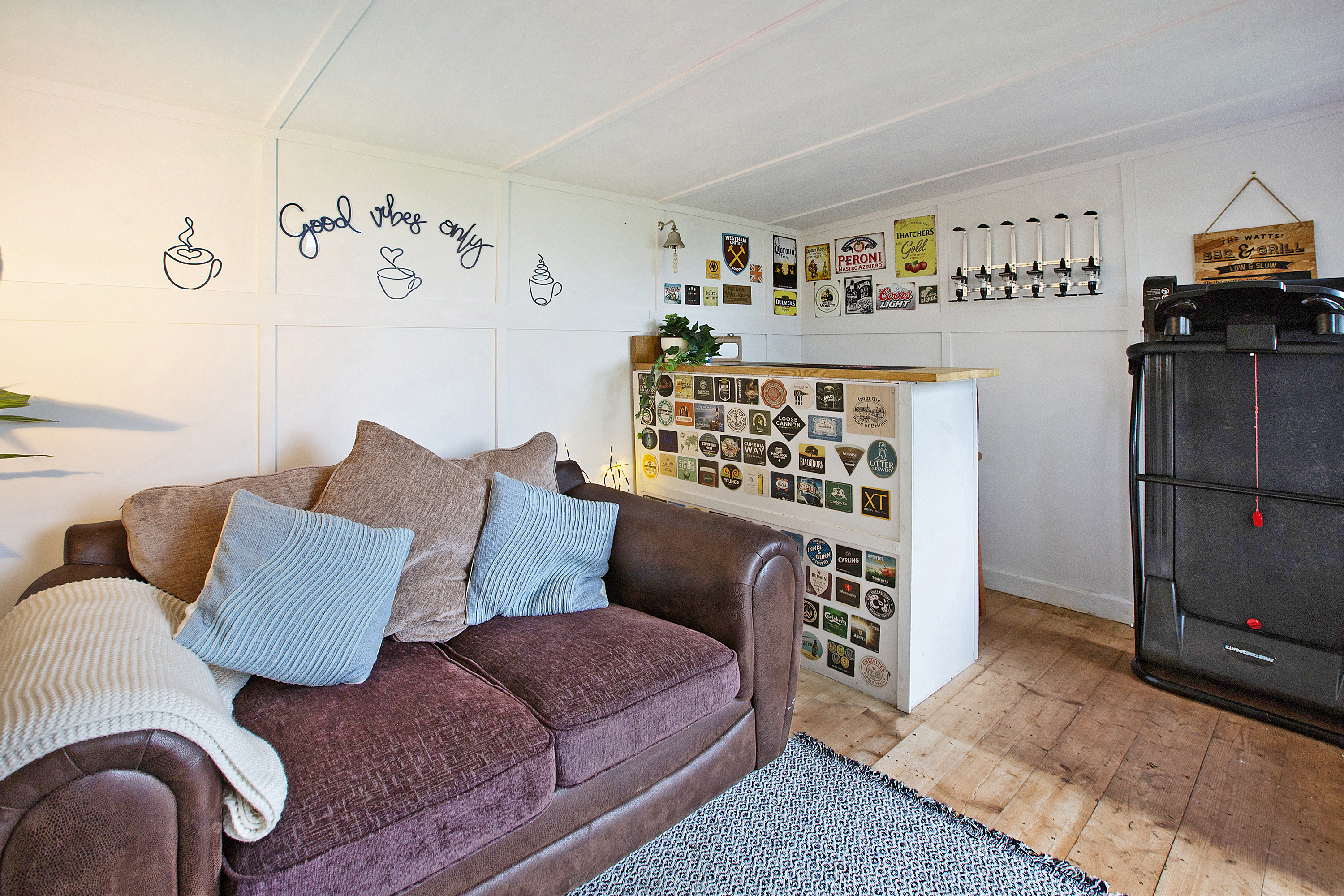 To the rear of the property there is an above average sized garden with side access to the garage. It is mainly laid to lawn and is enclosed with a wooden fence. There is a summerhouse/bar with electric.
