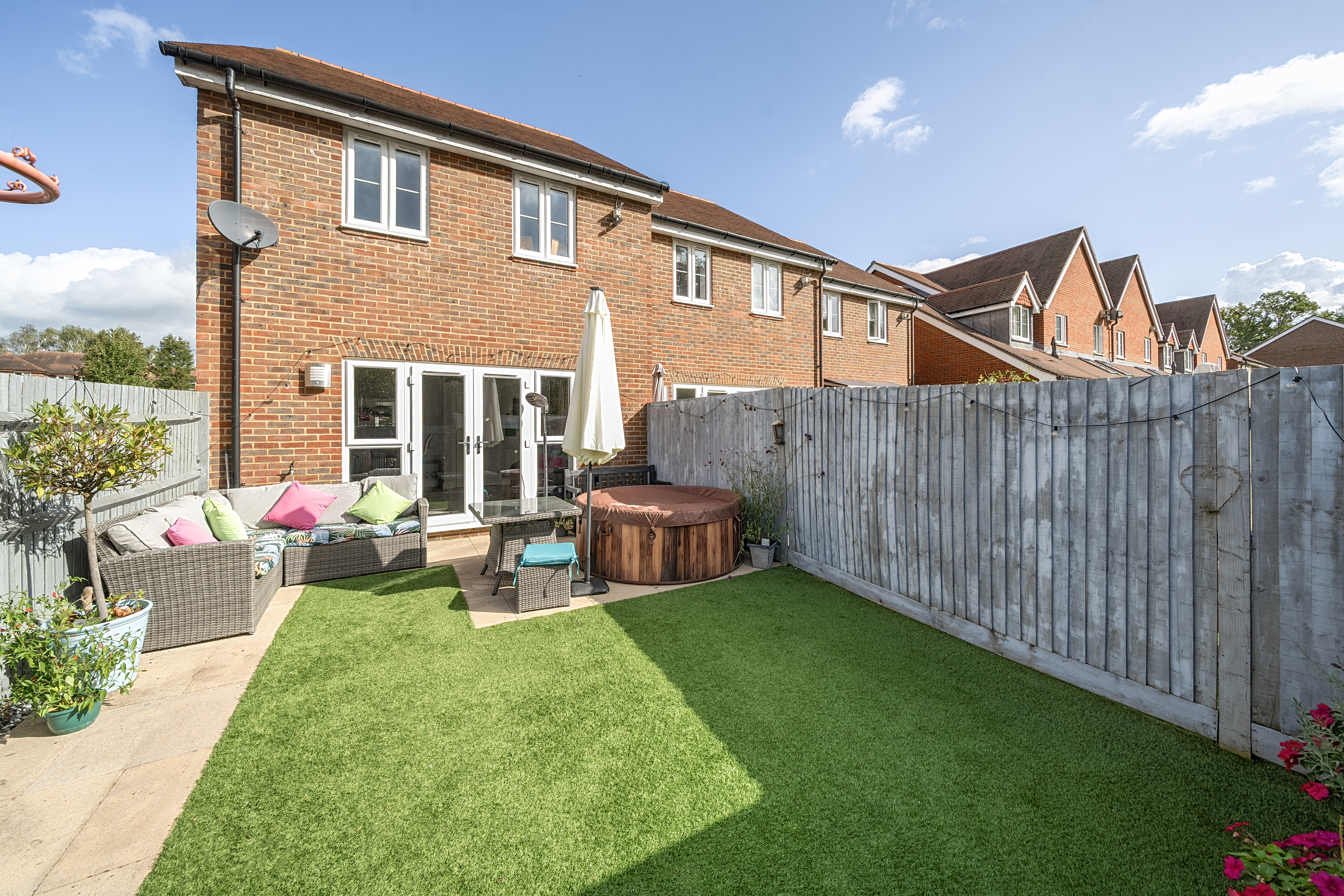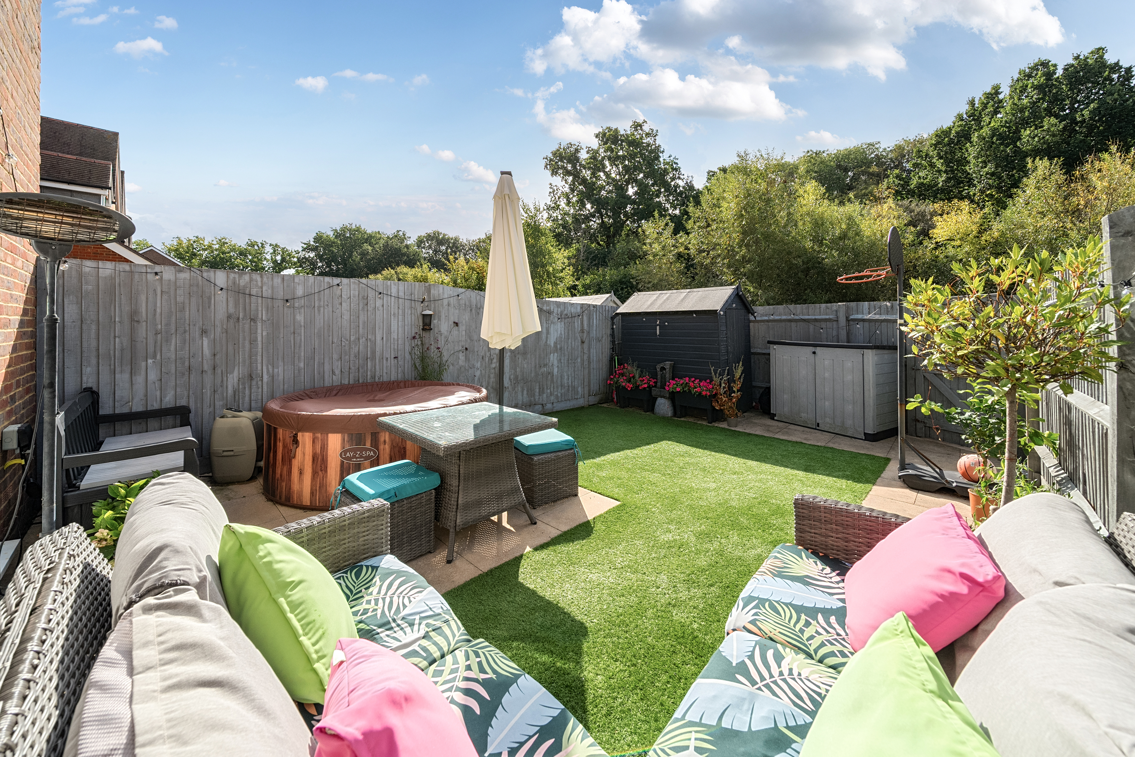 Outside, the property truly shines with its thoughtfully designed outdoor spaces. A patio area offers the perfect spot for al-fresco dining and entertaining and leads onto an area of artificial lawn. Whether hosting a summer barbeque or simply relaxing with the family, the garden offers the perfect blend of enjoyment and convenience. Additionally, residents can enjoy the convenience of allocated parking, ensuring a hassle-free arrival home.
