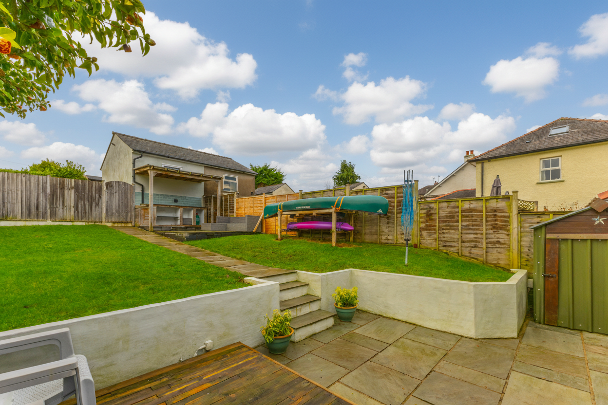 Outside, the property continues to impress. The rear garden features a lawn, patio seating area and an outdoor kitchen, creating a fantastic space for relaxing and socialising. There is also a useful boot room cupboard for additional storage. The front garden adds to the kerb appeal, while driveway parking and a garage to the rear provide excellent parking and storage options.