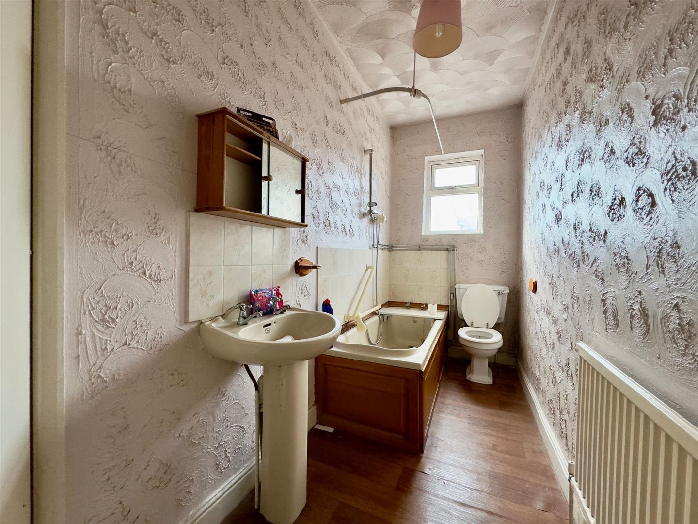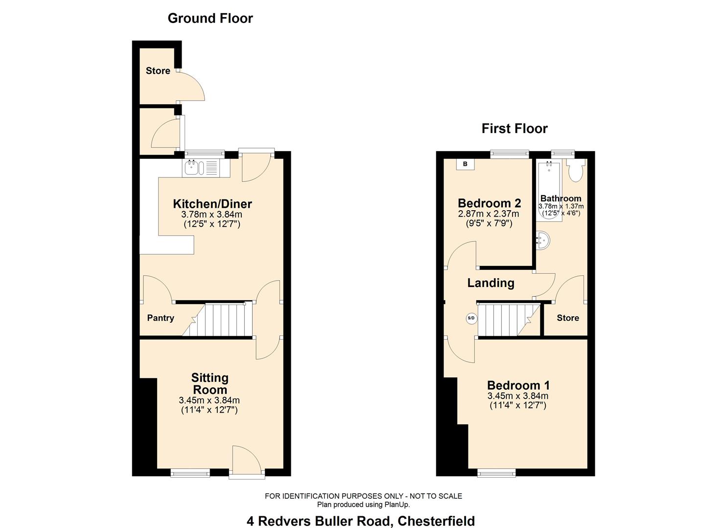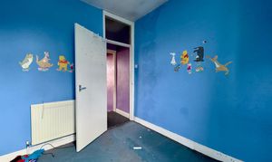 A front reception room leads to the kitchen and rear lobby, with two bedrooms upstairs and a bathroom beyond. Rooms are well-proportioned - the principal bedroom mirrors the footprint of the lounge, while the second bedroom suits a single, nursery or home office. Outside, there’s the usual terrace-style frontage and rear yard/garden area (scope to landscape to your taste).