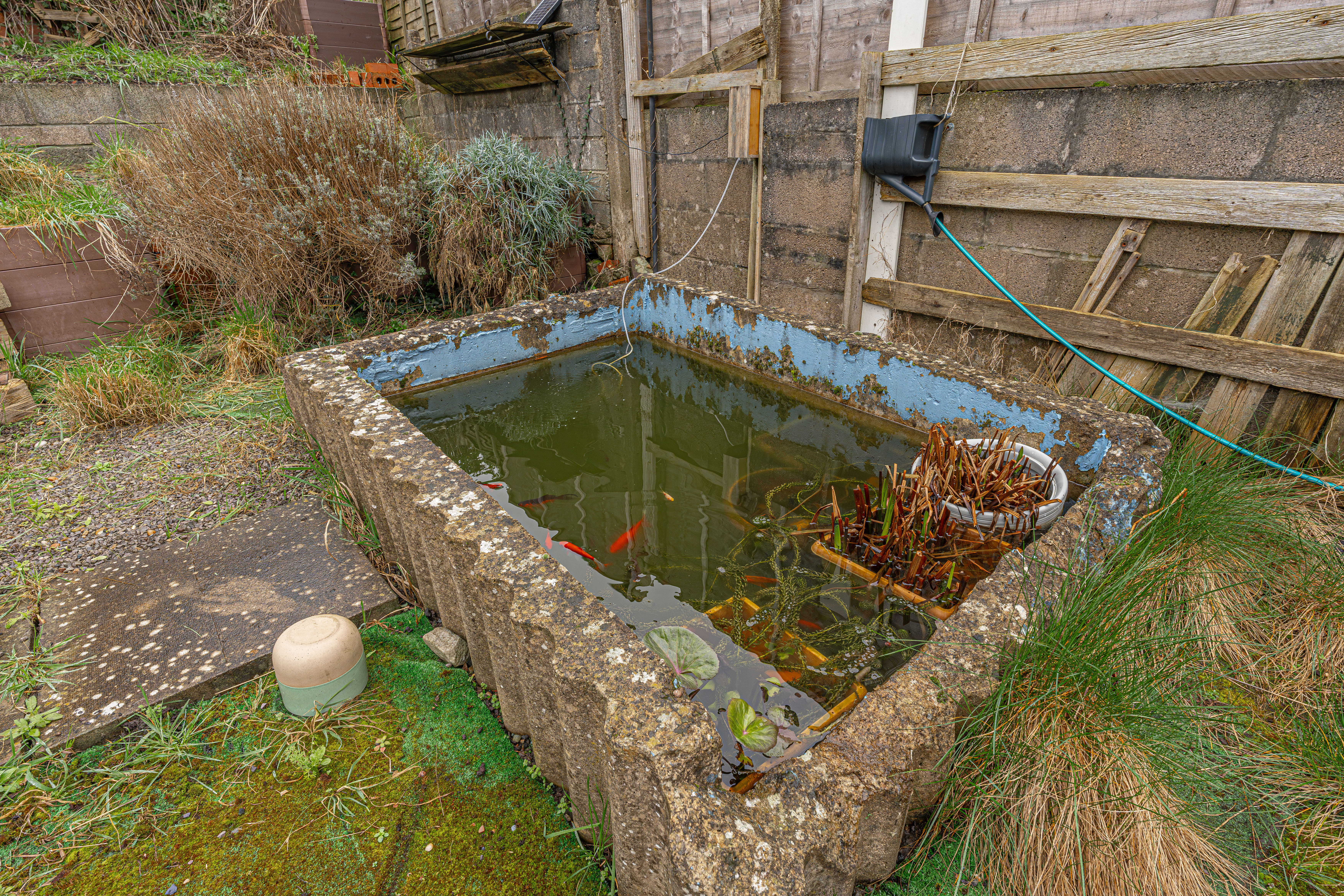 Outside we can find a large plot at the rear of the house, which is fully enclosed and offers an abundance of space for residents to unwind and relax, as well as welcoming guests for tea/coffee or al-fresco style dining. The garden itself is mostly covered with a low maintenance turf, and features a charming fishpond for an added attraction. Covered patio space is also available, providing a quiet retreat sheltered from the rain, in addition to a useful space for drying clothes.