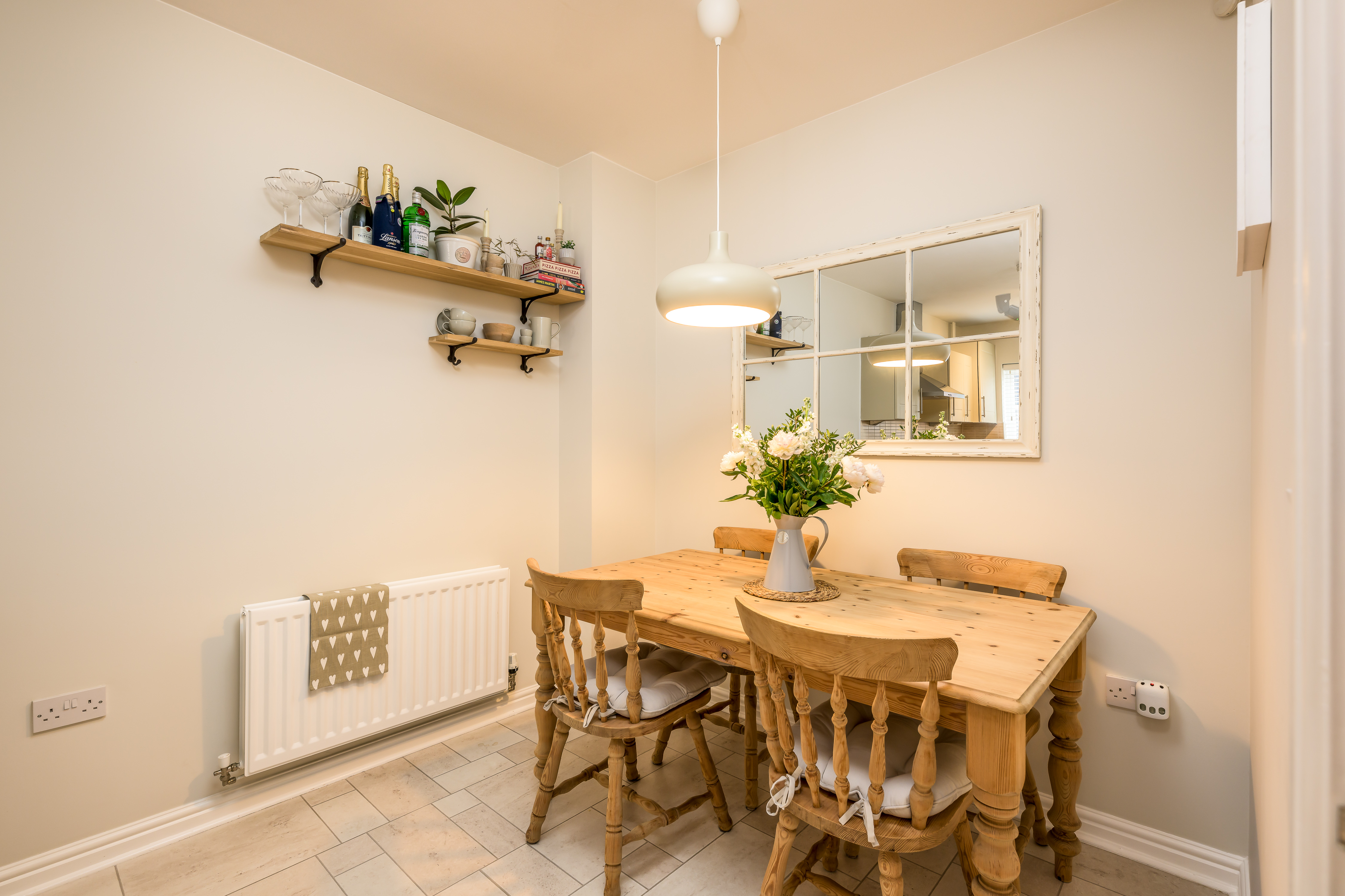 To the front of the house is the kitchen/dining room. This was updated a couple of years ago, and now has a farmhouse feel, with painted cabinetry and wood work surfaces. There’s a new Franke sink and drainer, and new integrated appliances including an induction hob, a fridge/freezer and a dishwasher. The dining area is a great size for family gatherings and daily meals alike, and for homework and art and crafts at the table after school.