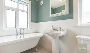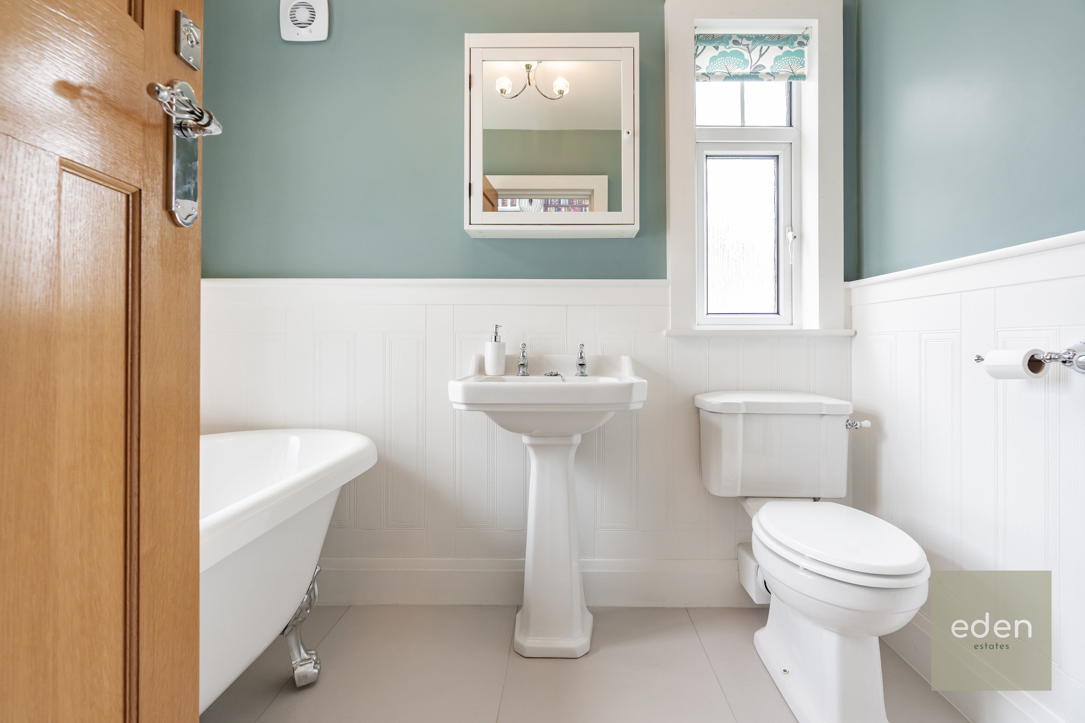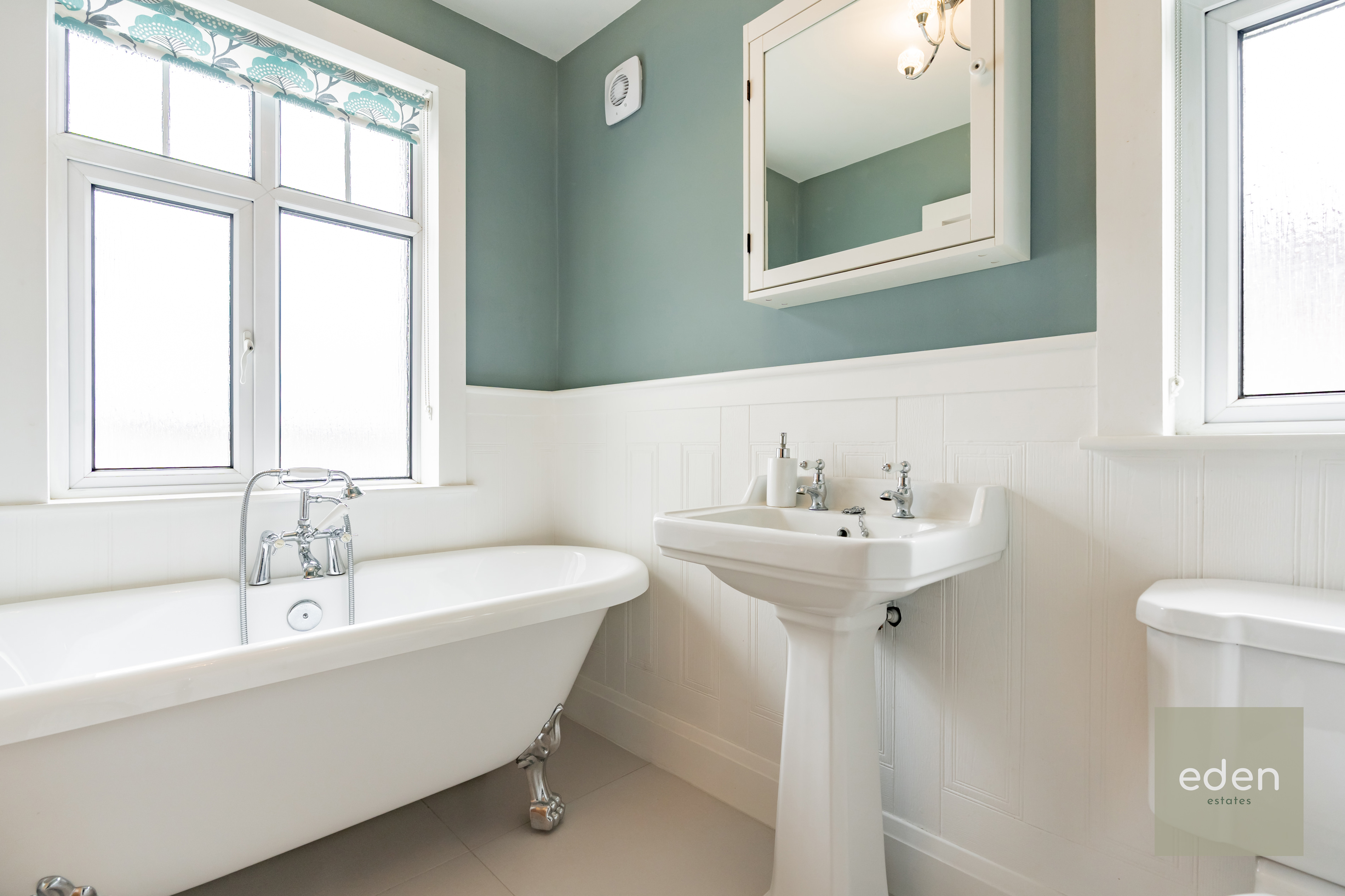 Upstairs, the first floor presents three well-proportioned bedrooms, each beautifully finished and generous in size, alongside a modern family bathroom with quality fixtures and a roll top bath.