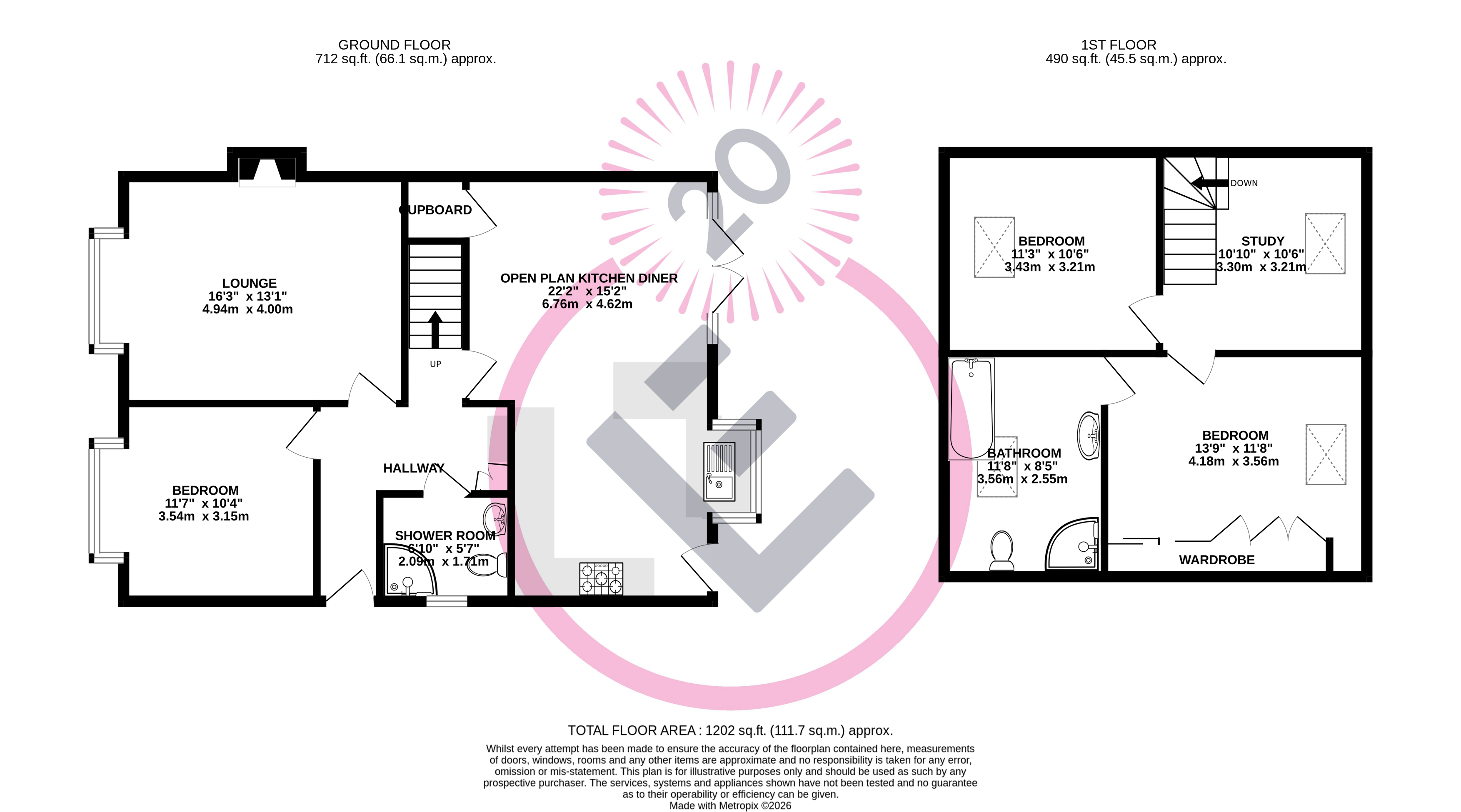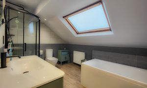 All three bedrooms are generous doubles and there is additional study space on the large landing. There is real versatility to the layout with a bedroom and stylish shower room on the ground floor whilst upstairs you will find a further two double bedrooms. The master bedroom boasts a true luxury – a stunning four-piece en-suite bathroom installed just over a year ago. The master bedroom also enjoys a large built in wardrobe.
