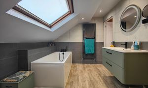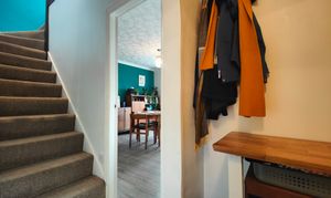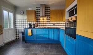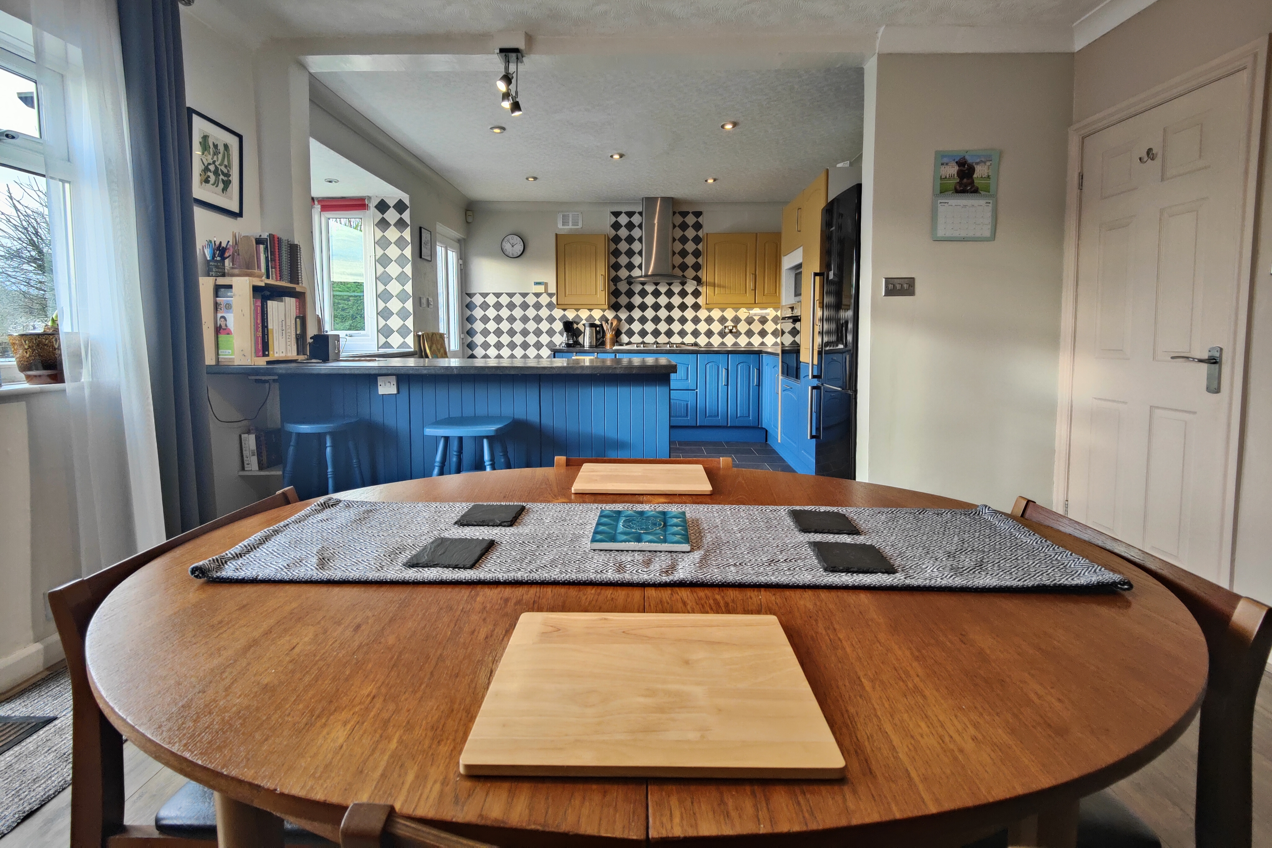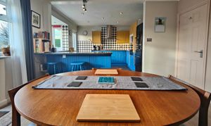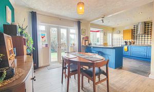Step inside to discover a light-filled and generous home. The open-plan kitchen diner will instantly capture your imagination. This generous space, complete with French doors opening onto the south-facing garden and an attractive bay window, creates the perfect setting for both everyday family life and entertaining guests. The kitchen is beautifully appointed with a large breakfast bar ideal for morning coffee or casual dining, an integrated Bosch oven, and a five-ring gas hob. The spacious front lounge features a characterful wood burning stove, creating a cosy focal point for those cooler evenings. This stylish space showcases the real attention to detail.