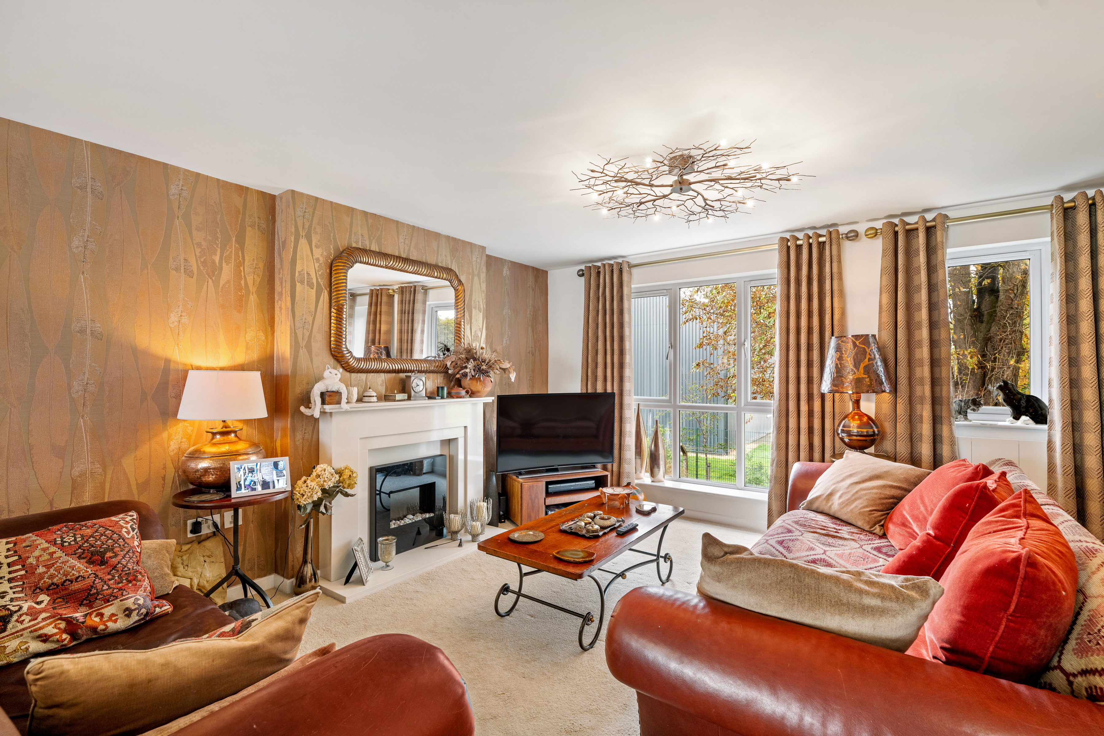 - First floor open-plan living area: Versatile lounge with study space and large windows