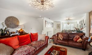 The ground floor welcomes you with a entrance hall featuring a handy understair storage cupboard. From here, you enter the impressive open-plan kitchen/dining room, which has been extended into the garage to create a larger, more functional space. The kitchen is fitted with stylish modern units, integrated appliances, and boasts a patio door and large window that flood the room with natural light. There is also integral access to the garage, currently used for storage.