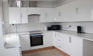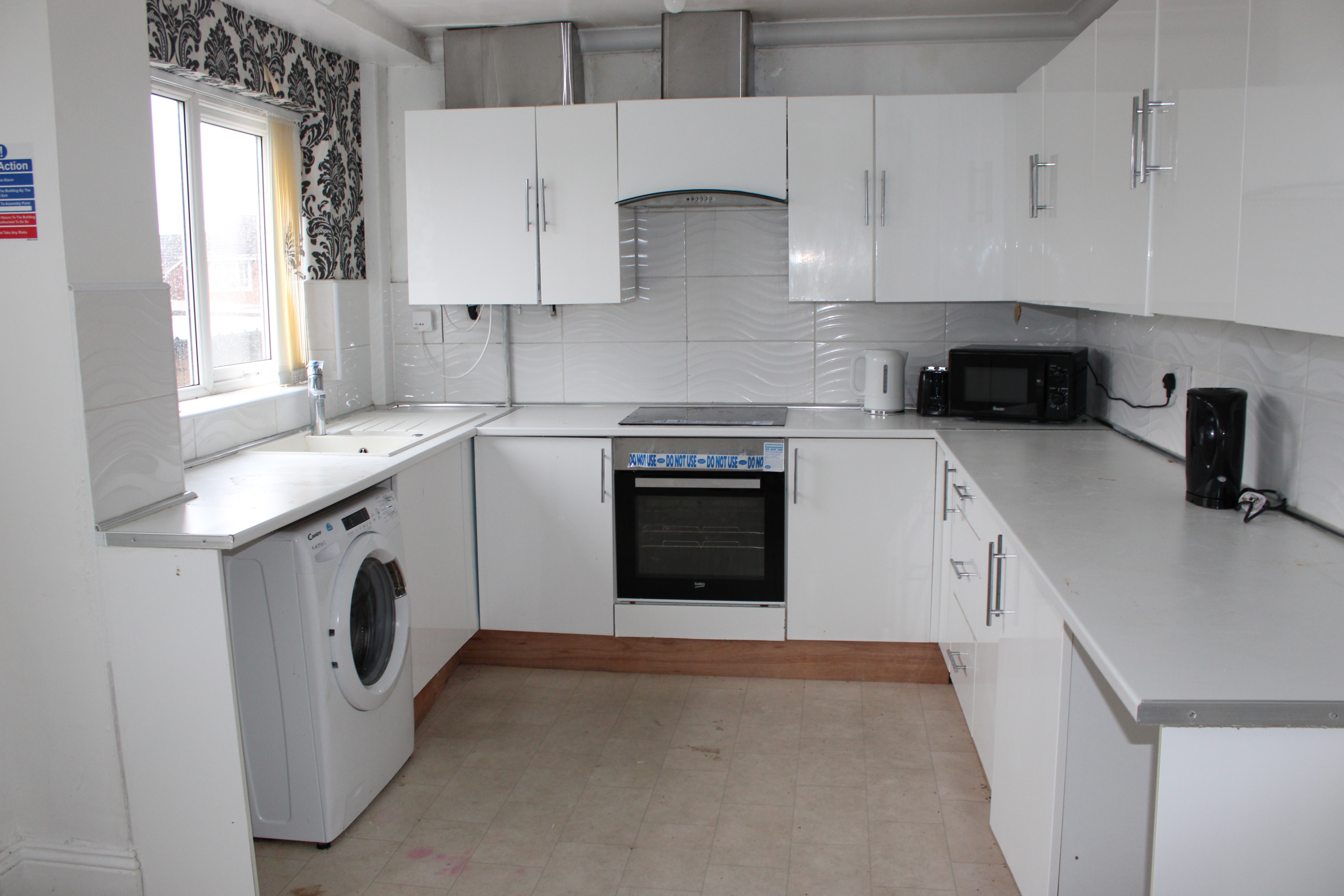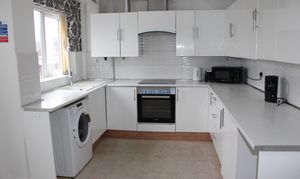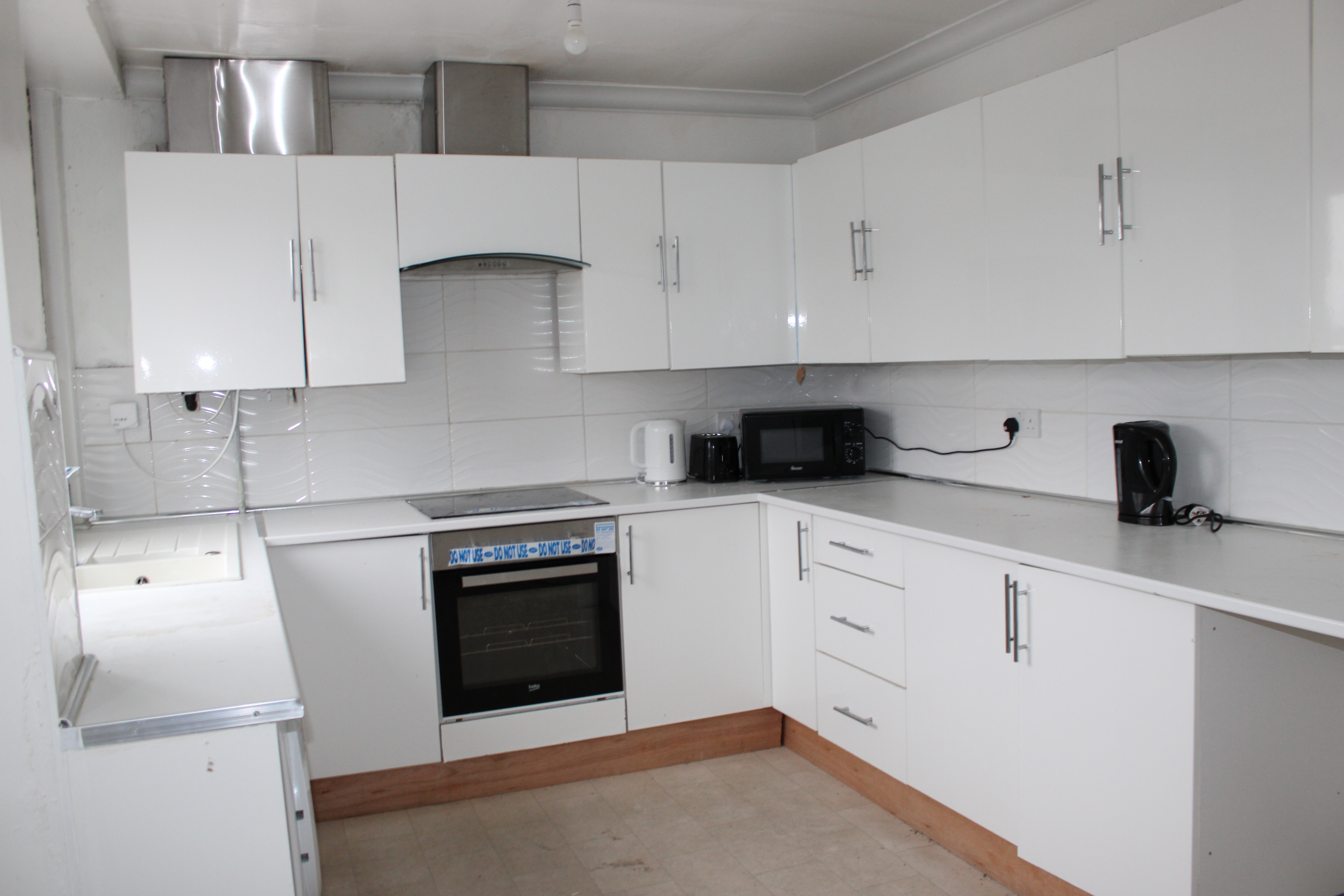 Two UPVC Double Glazed Windows and UPVC Double Glazed Door to the rear Elevation. Modern Fitted Kitchen with a Range of White High Gloss Wall and Base Units and Co Ordinating Work Surfaces. Integrated Electric Hob, Oven and Extractor, Plumbing for Automatic Washing Machine, Space for Fridge/ Freezer and One and a Half Bowl Resin Sink with Chrome Mixer Tap over. Ceiling Points and Vinyl Flooring. Dining Area with Central Heating Radiator, Ceiling Point and Vinyl Flooring.