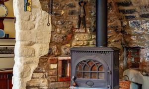 - Characterful lounge with vaulted ceiling, log burner, and exposed beams