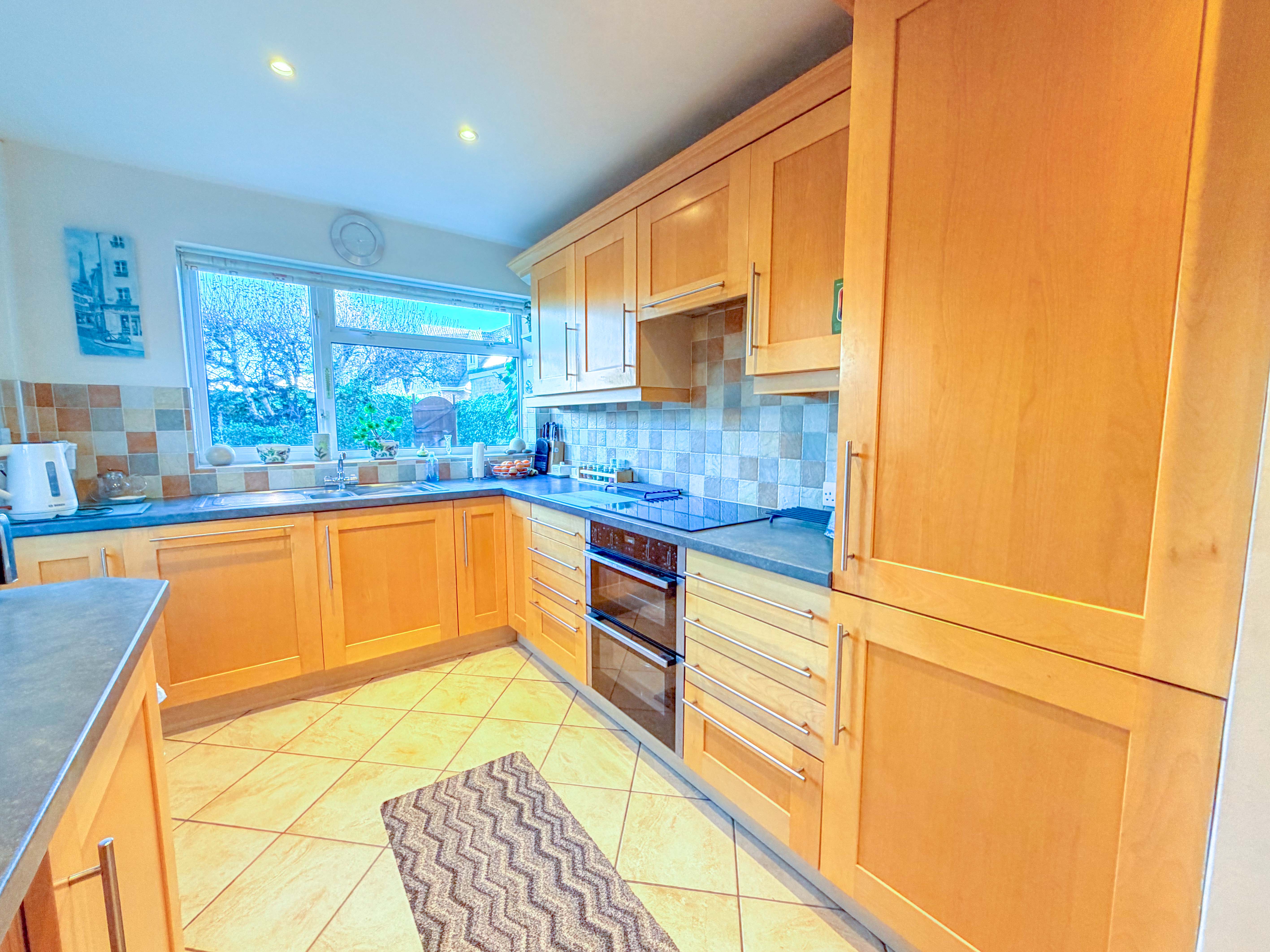 To the rear, private off-road parking and a double garage offer excellent practicality, storage options and secure vehicle space.