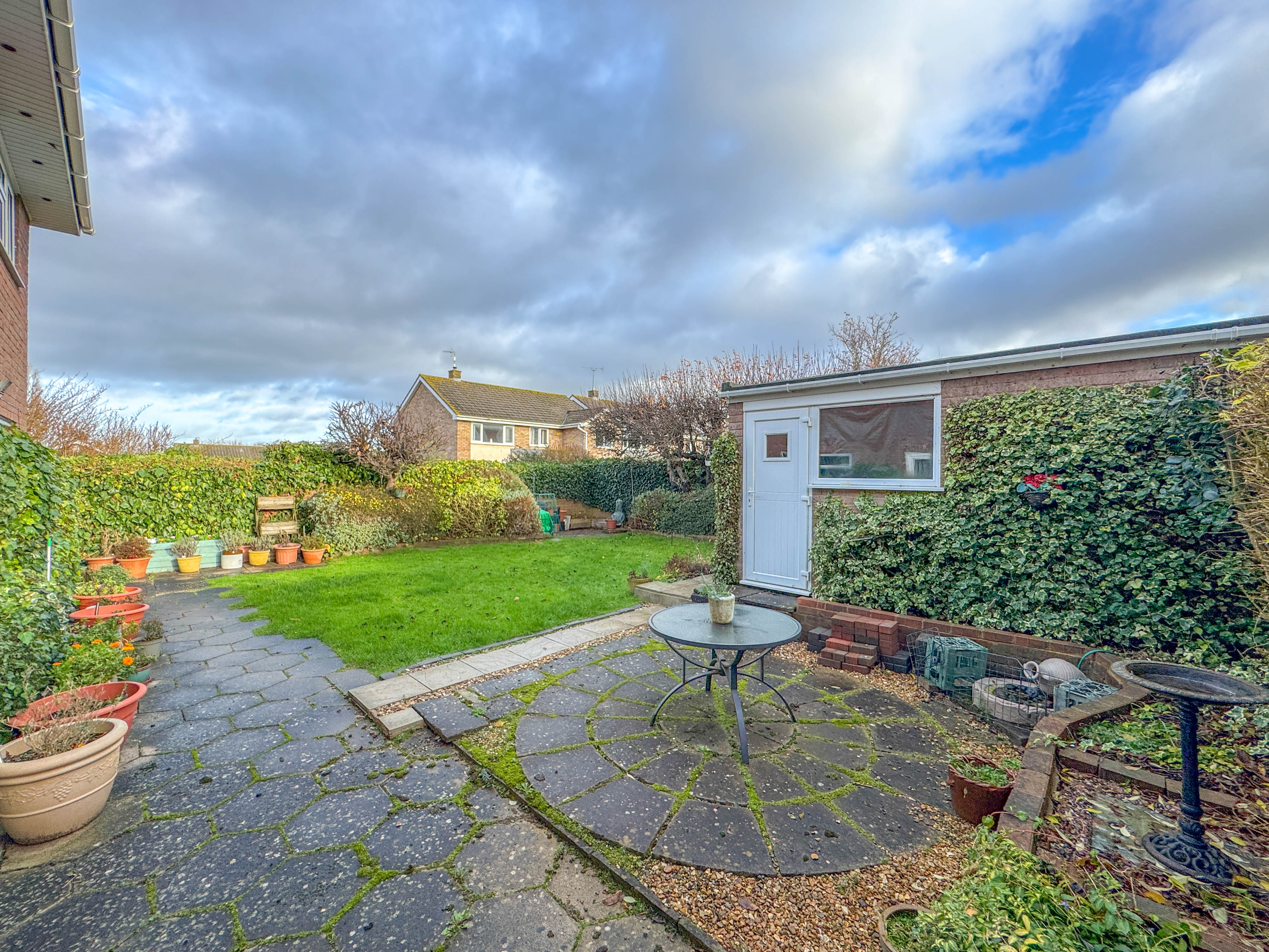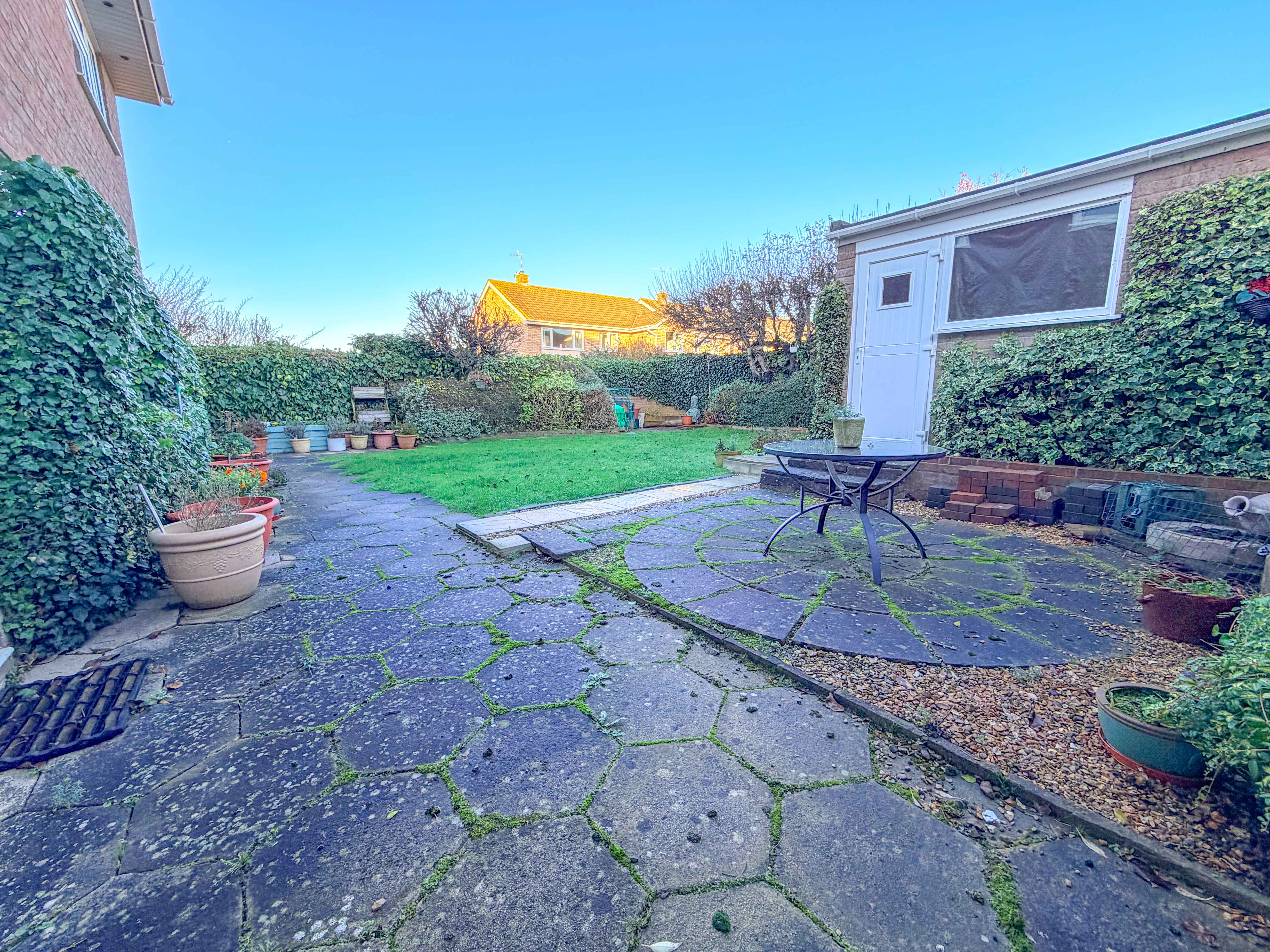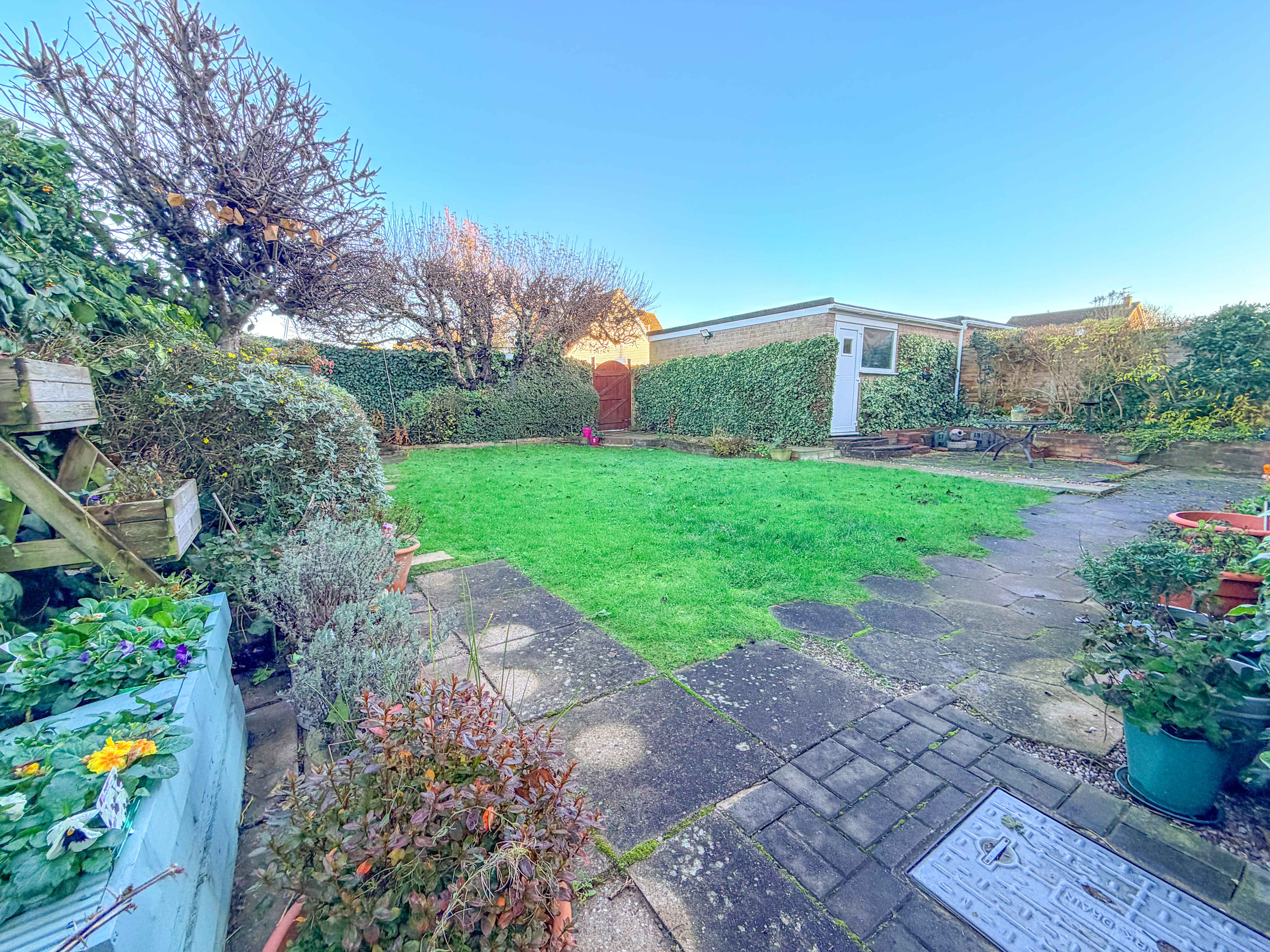 Outside, the rear garden is thoughtfully designed with a paved patio perfect for outdoor dining or relaxing in the warmer months, leading onto a well-kept lawn. The additional side section of the garden offers exciting potential for extending the property in the future—subject to the appropriate permissions—making this a home that can evolve with the needs of its next family.