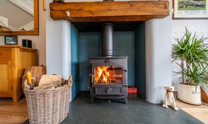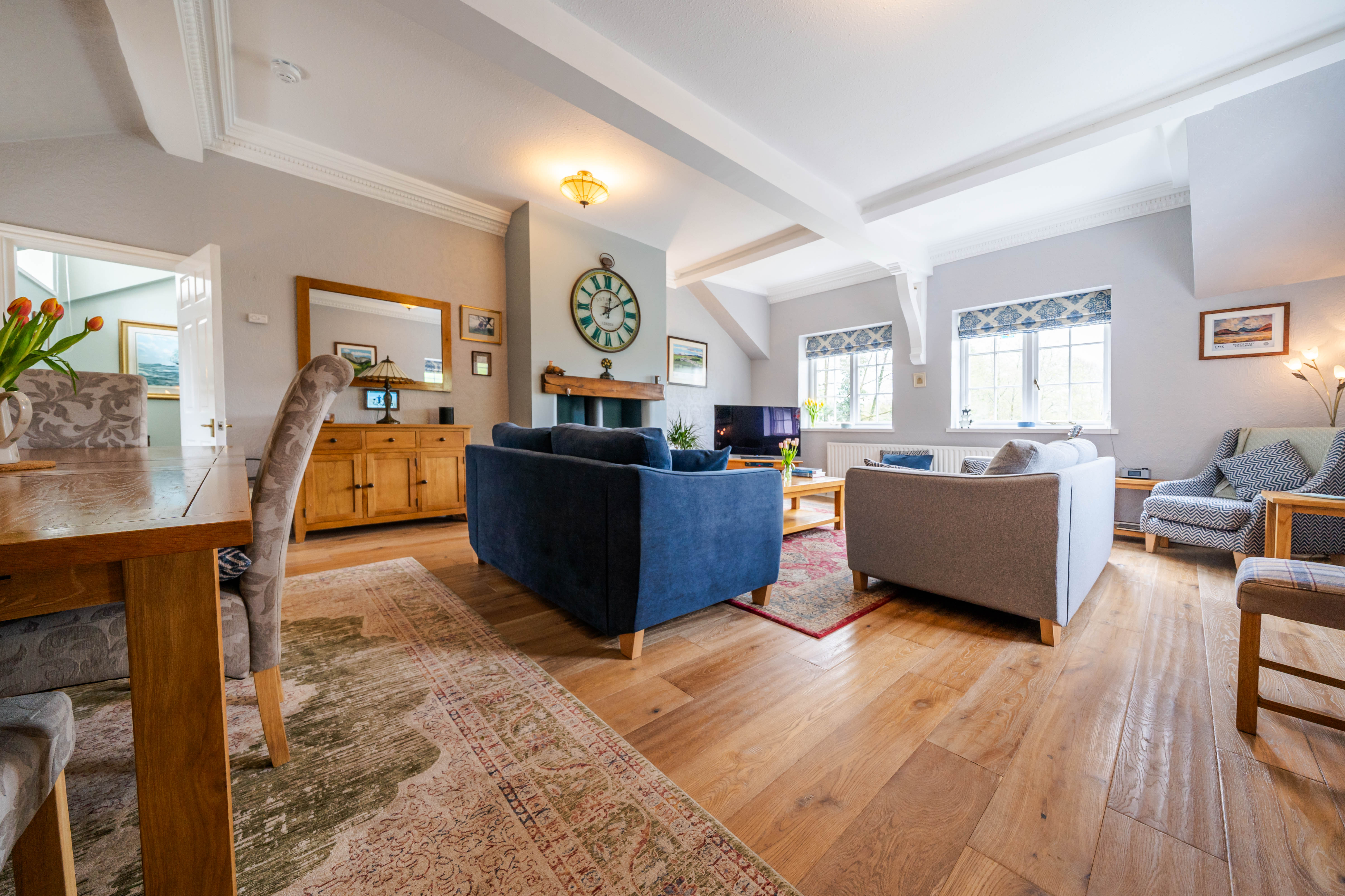 - Fabulous spacious lounge/dining room featuring high ceilings and woodburner