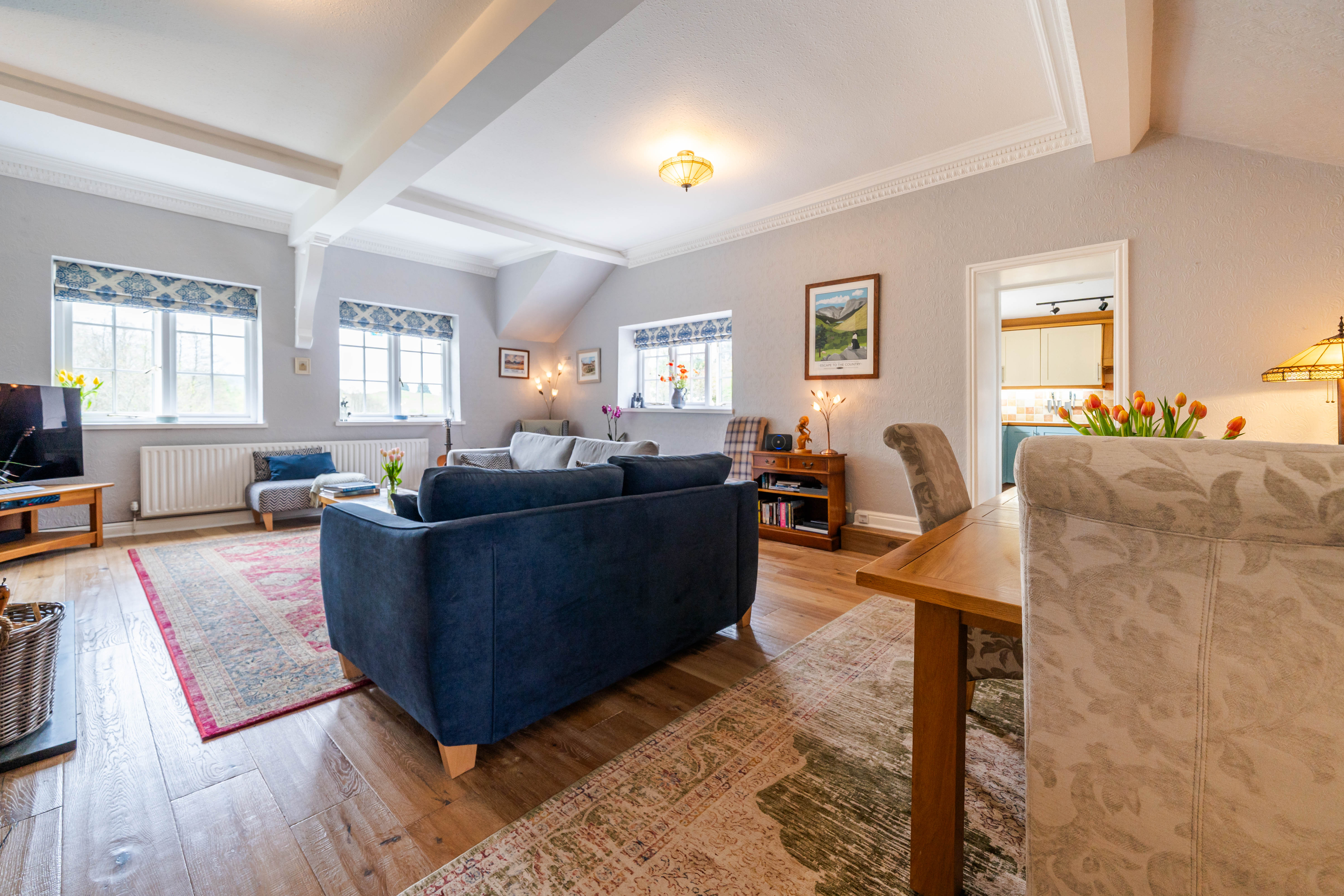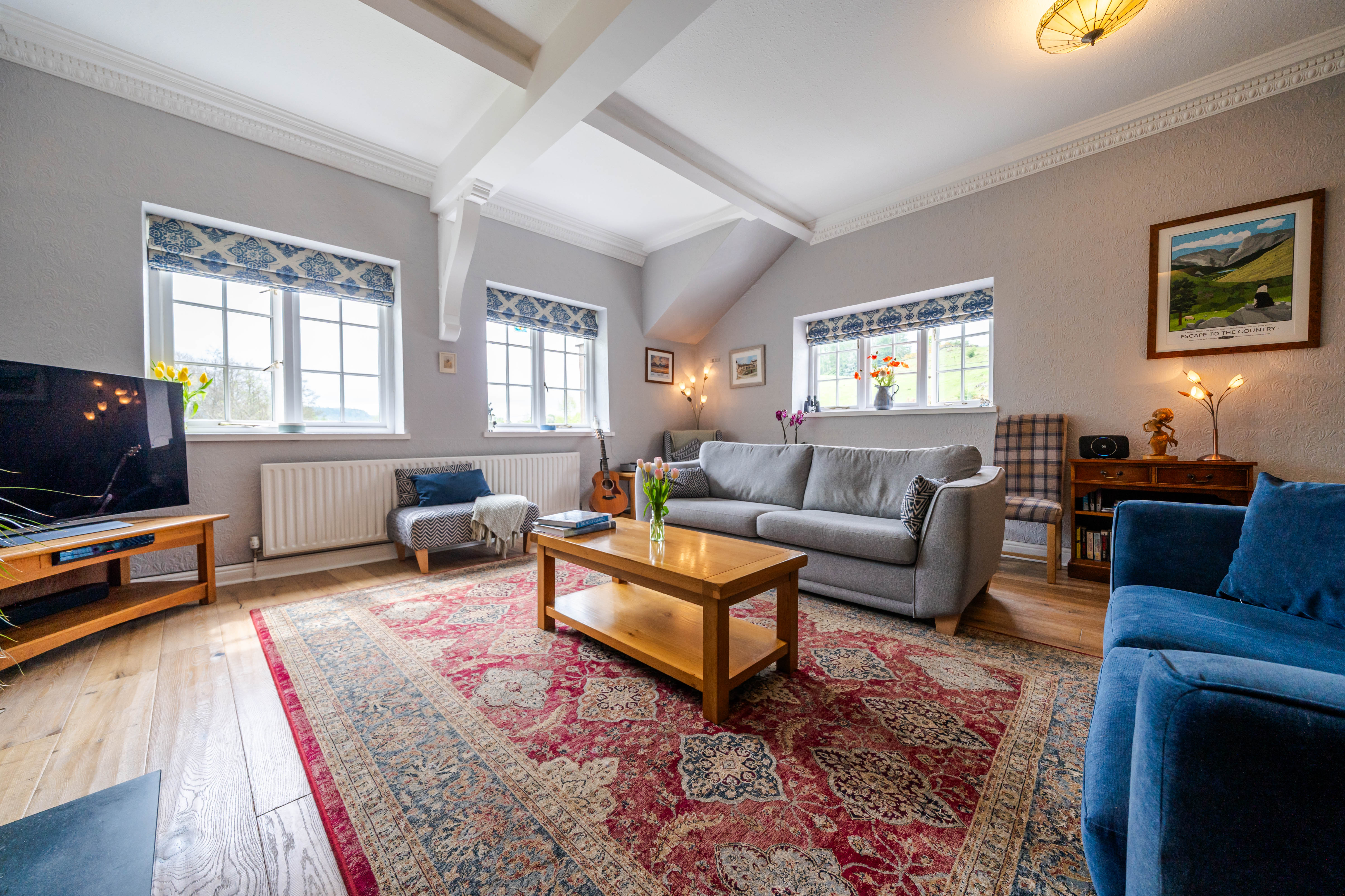 Set in this highly sought after rural location, this two bedroom second-floor (top floor) apartment boasts a delightful blend of modern elegance and countryside charm. Upon entering, you are greeted by a fabulous and spacious lounge/dining room featuring a cosy woodburner, perfect for relaxing evenings or entertaining guests. The well-presented kitchen offers ample storage and workspace, while the two double bedrooms provide comfort and tranquility, with one benefiting from an en-suite bathroom. Completing this inviting abode is a three-piece bathroom suite, ensuring convenience and functionality for every-day living. Enjoy the stunning fell views and picturesque surroundings, with delightful walks and bike rides right from your doorstep. This top floor apartment is characterised by its high quality, light-filled spaces, making it a perfect retreat for those seeking a peaceful and idyllic lifestyle.