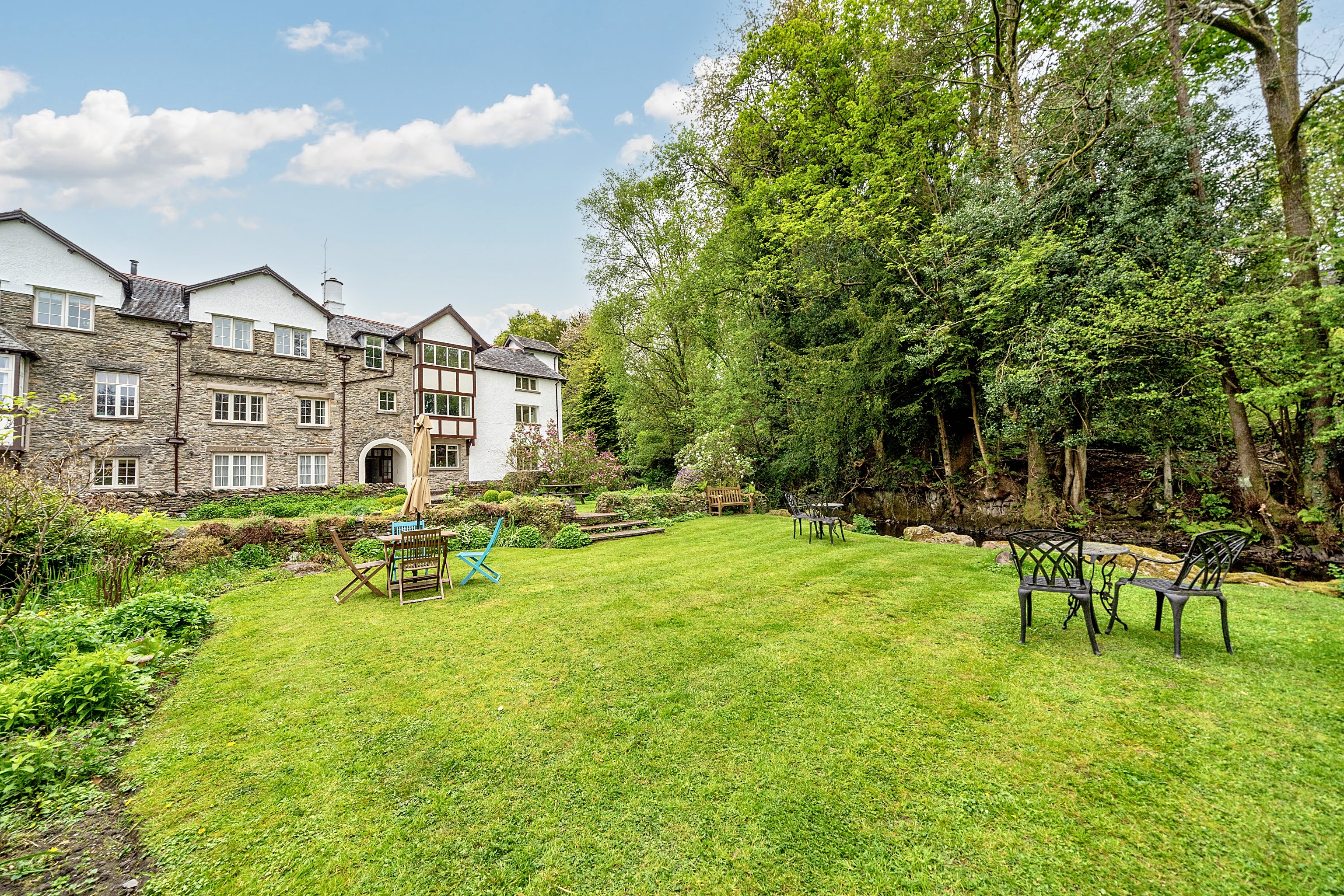 Stunning communal grounds surround the property with well kept lawns, planted beds, seated areas and the Gilpin river to the left of the property. Plenty of parking available.