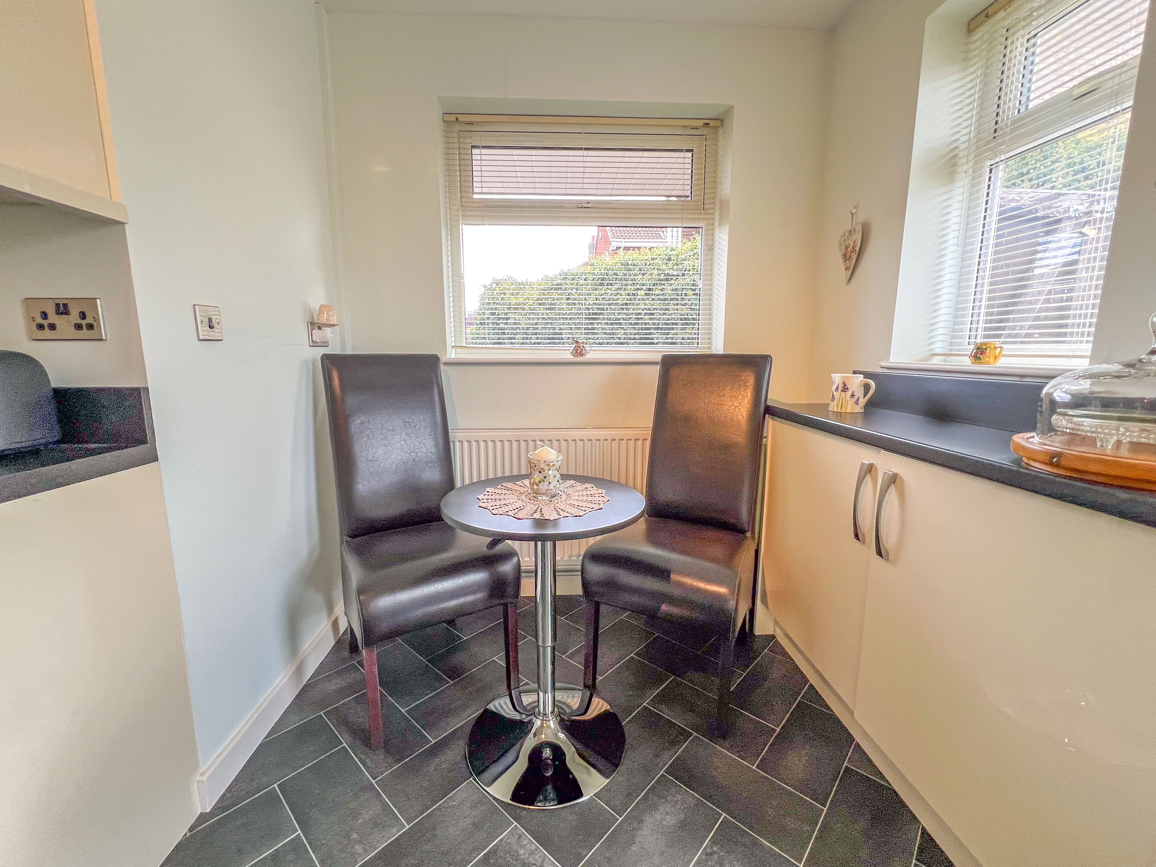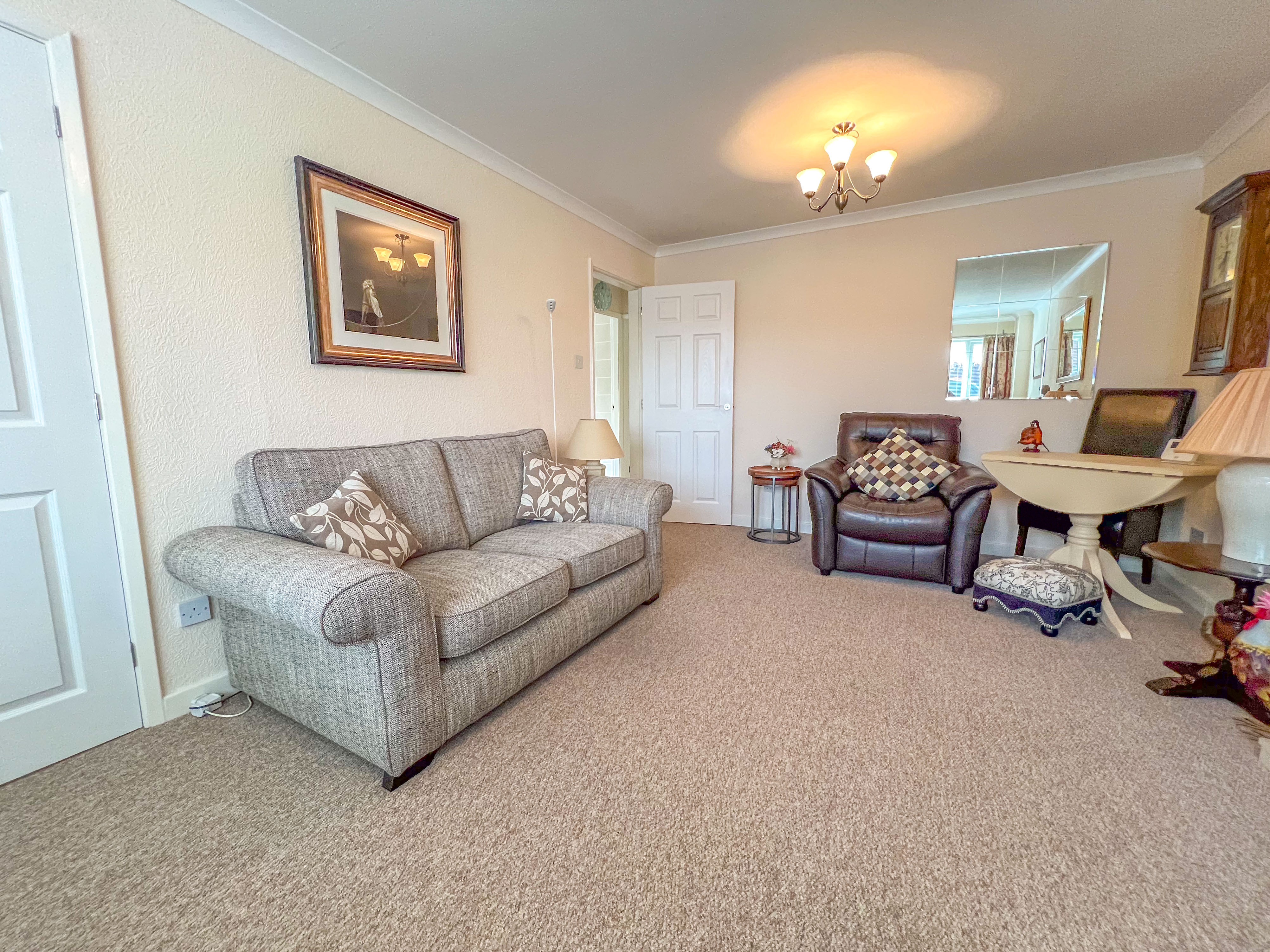 The accommodation has been thoughtfully arranged to provide comfortable and practical living space throughout. A welcoming entrance hall leads to a bright and spacious lounge, a perfect retreat to relax or entertain, with large windows allowing natural light to flood the room. The breakfast kitchen is both functional and inviting, fitted with an excellent range of units and offering ample space for casual dining. There are two generous bedrooms, both tastefully decorated and a beautifully refitted four-piece bathroom, complete with both a bath and separate shower, creating a sense of modern luxury and ease.