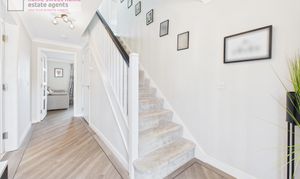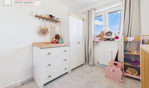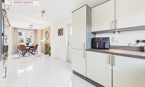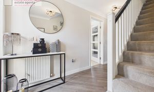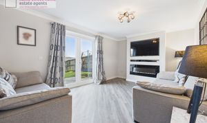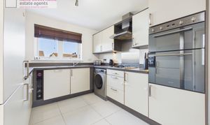 Upon entering, you are welcomed by a bright and inviting hallway providing access to the staircase and all ground floor accommodation. The generously proportioned lounge is flooded with natural light, creating a warm and relaxing space for everyday living. The stylish kitchen is well-appointed with high-specification appliances, including a freestanding fridge freezer, integrated dishwasher, oven, gas hob and washing machine, offering both practicality and modern convenience. The ground floor WC, incorporating a useful storage cupboard, completes the accommodation on this level.