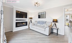 Externally, the property continues to impress. The front garden is laid to lawn and features a driveway providing off-street parking for two vehicles. The rear garden is predominantly laid to lawn and is currently arranged with a children’s play area, creating a fantastic outdoor space for family enjoyment and entertaining. The home further benefits from an integral garage, adding valuable storage and convenience.