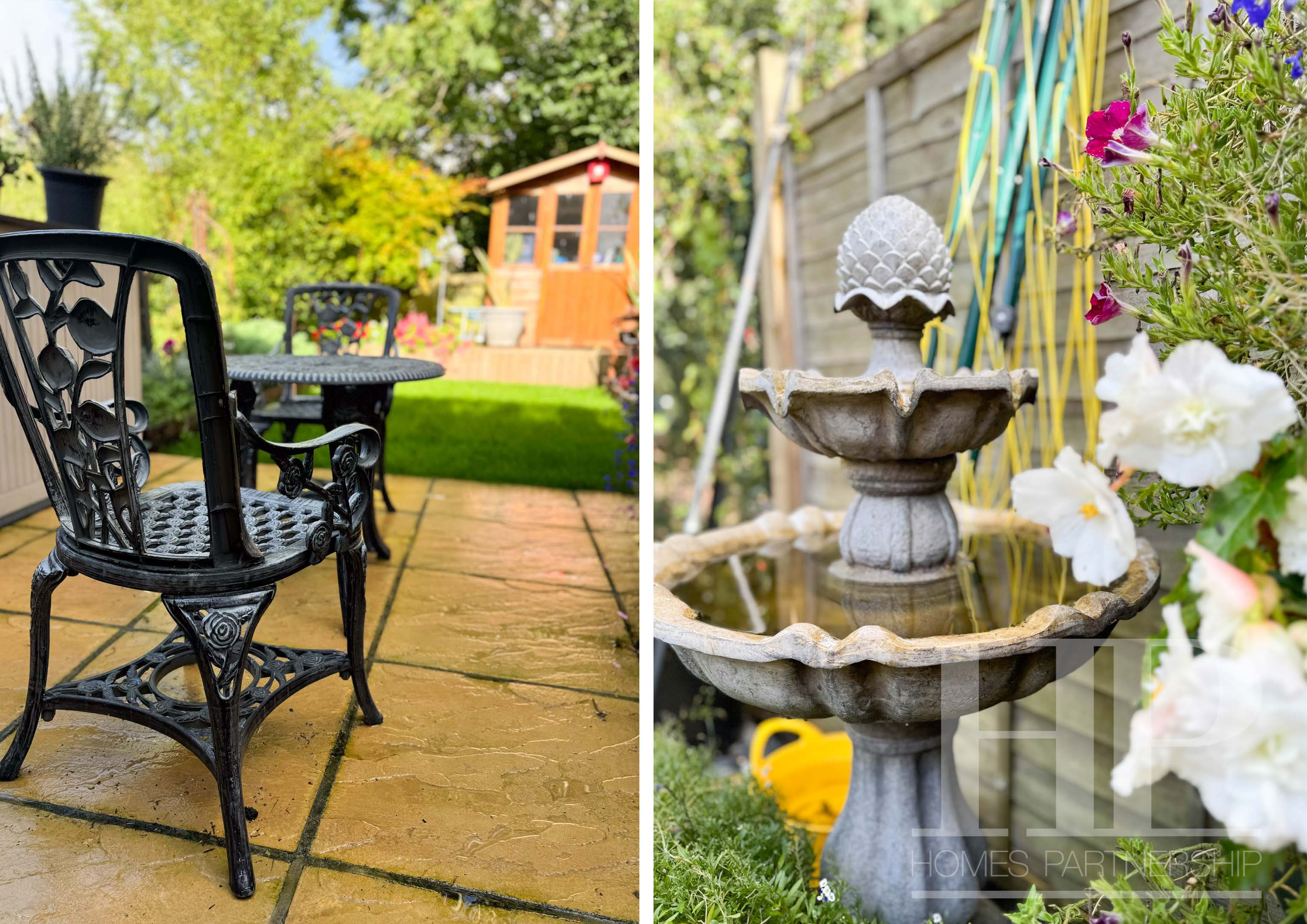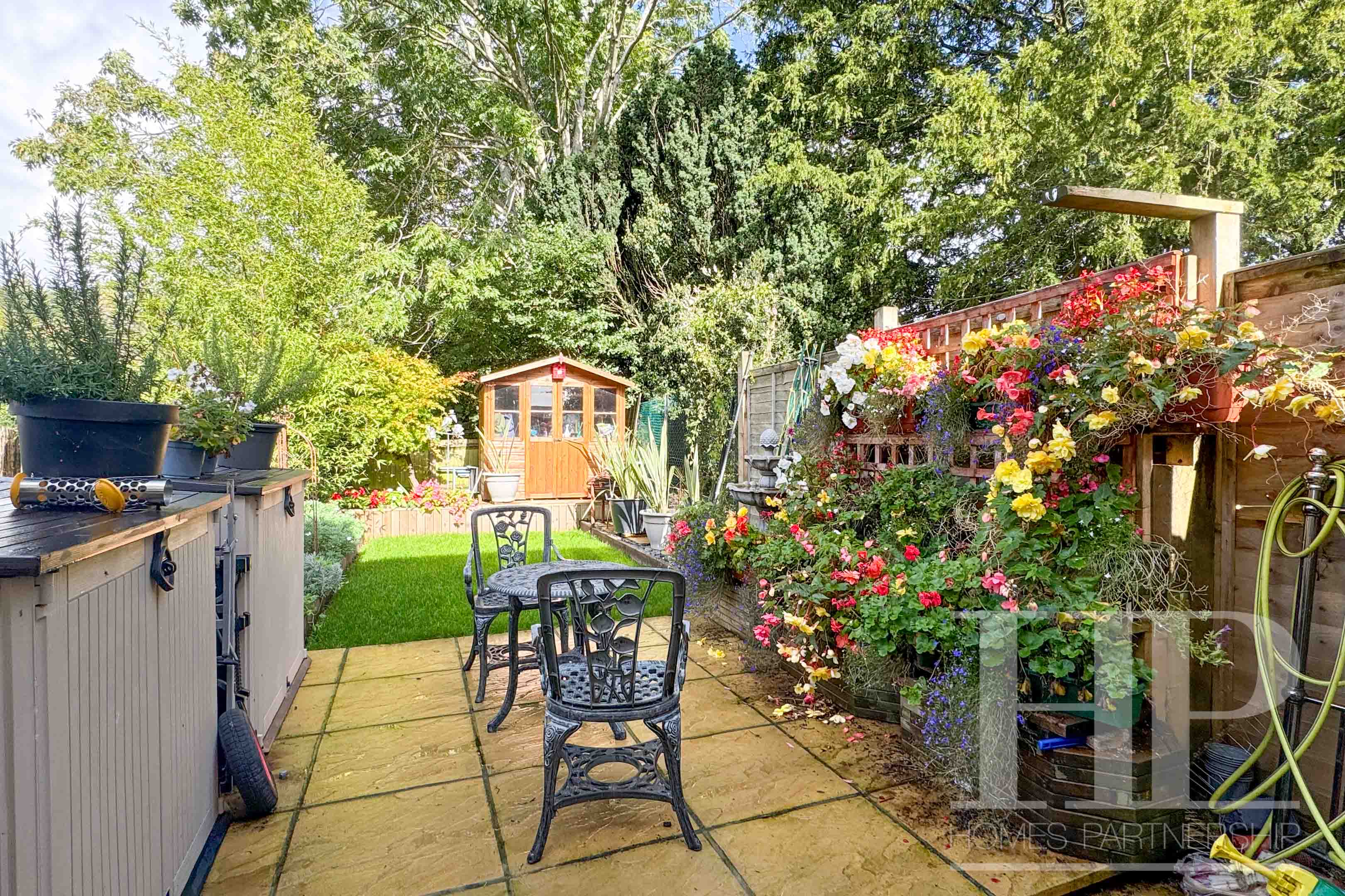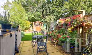 - Tiered rear garden with patio, lawn and decking