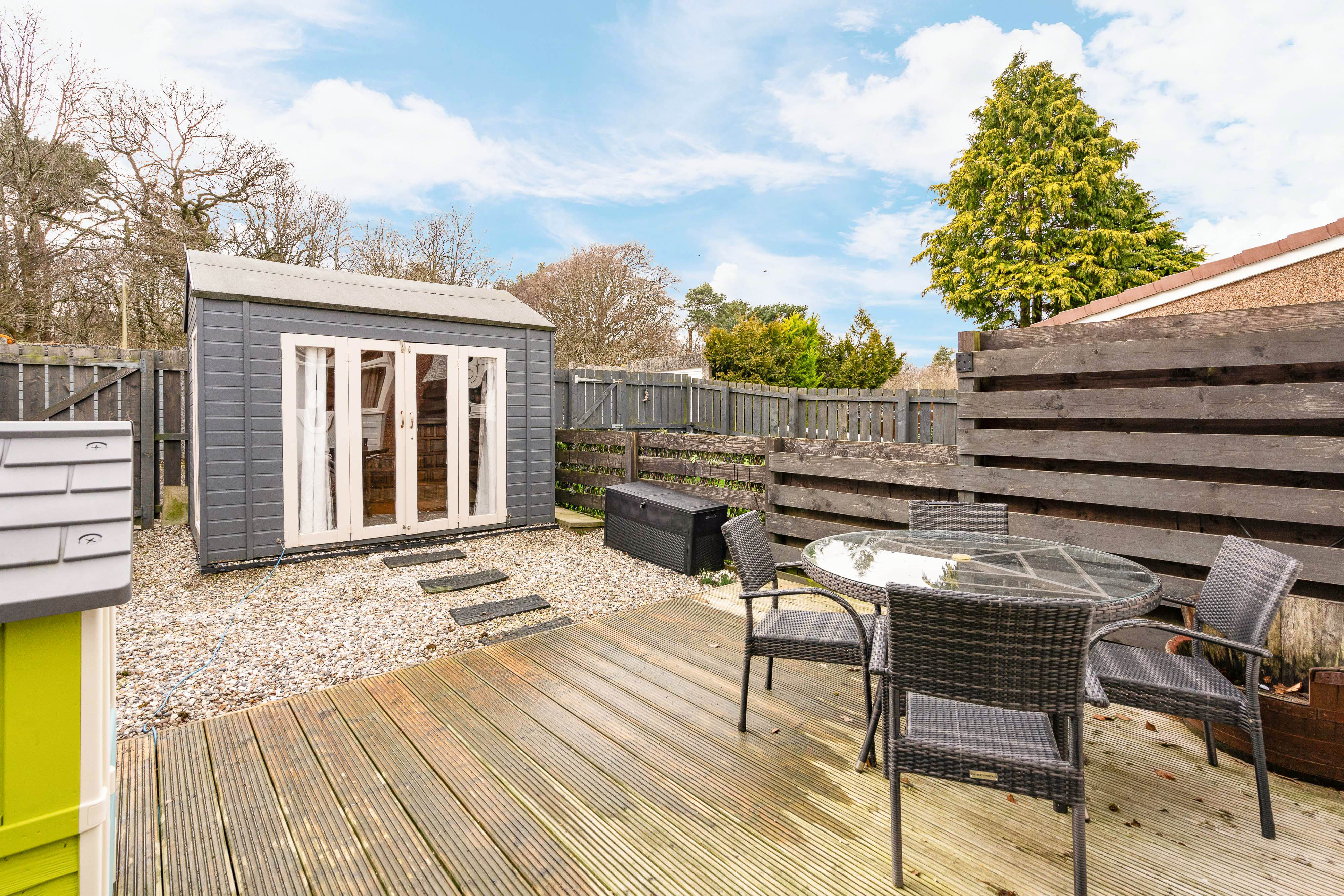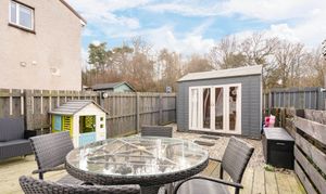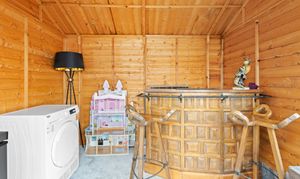 The rear garden is fully enclosed, offering a private and versatile outdoor space. It features a stylish garden room, perfect for relaxing, working, or entertaining, and is easily accessed either from the lounge or via the rear gate, making it both practical and inviting.