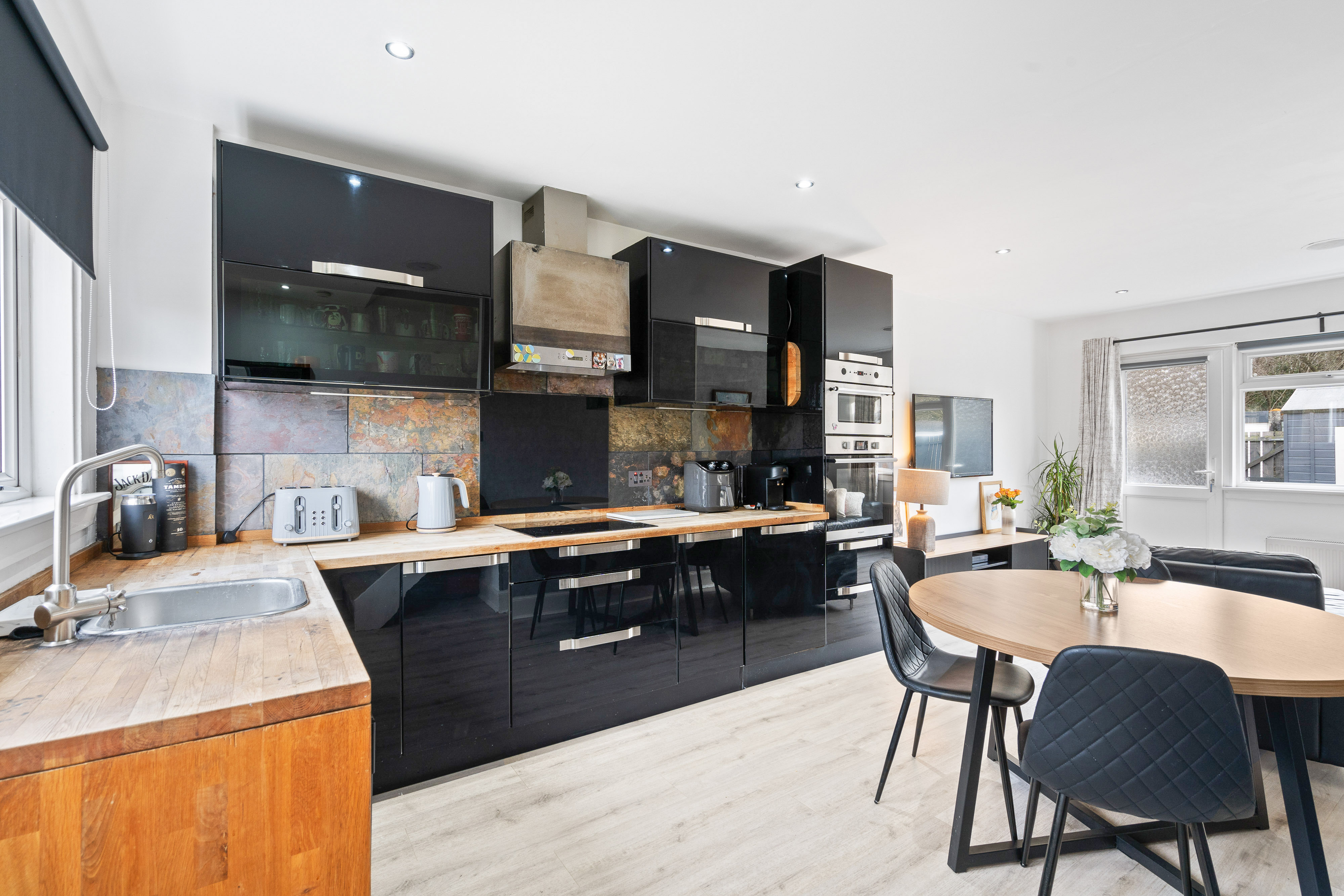 - Open-plan kitchen/diner with integrated appliances