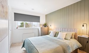 Bedroom one is a generously proportioned room located at the front of the property, benefiting from plenty of natural light. It features a built-in wardrobe, providing practical storage, while still offering ample space for additional freestanding furniture, making it a versatile and comfortable main bedroom.