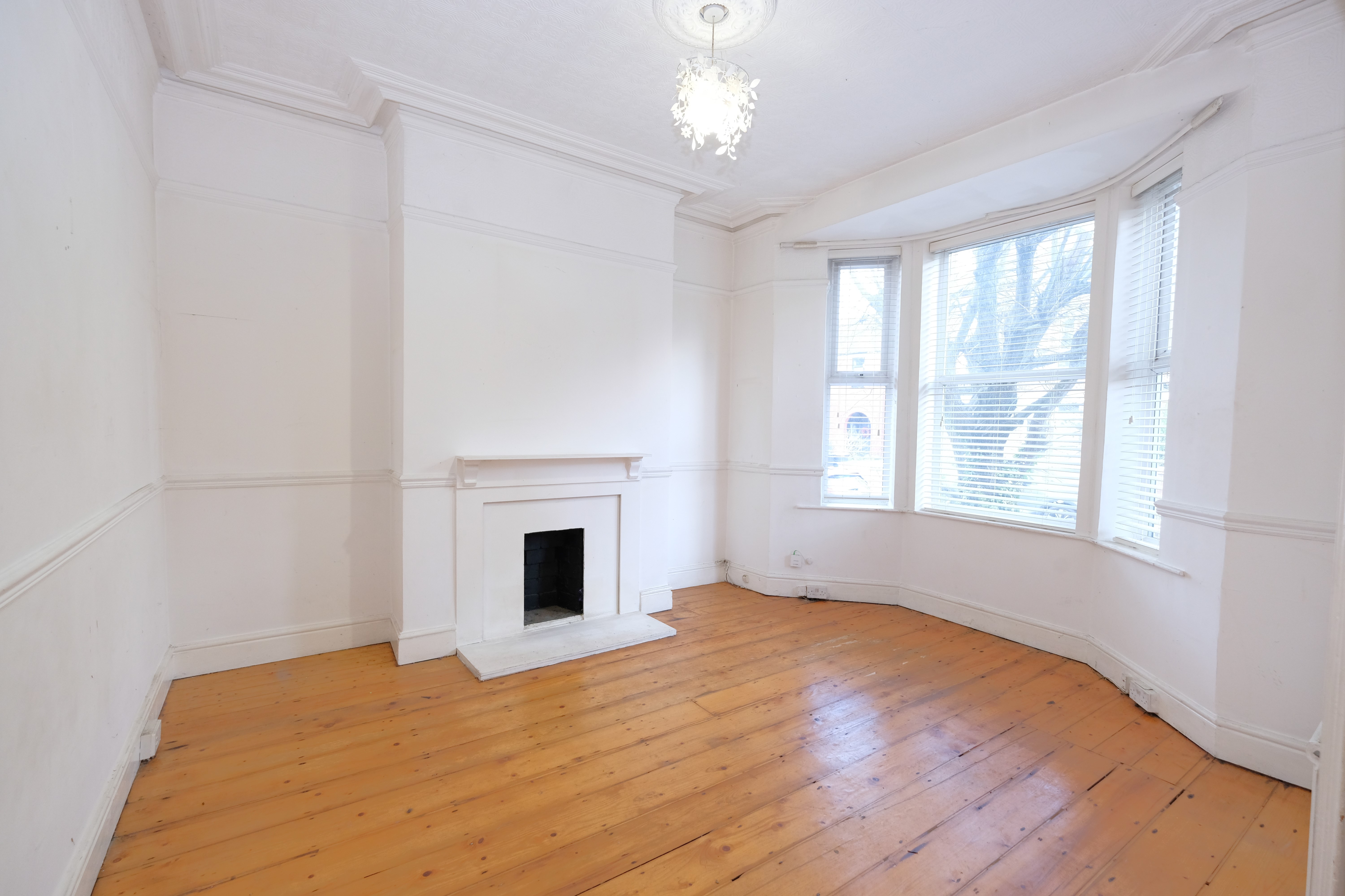 Featuring an open fire surround. Complete with a ceiling light point, double glazed bay window and wall mounted radiator. Fitted with hardwood flooring.