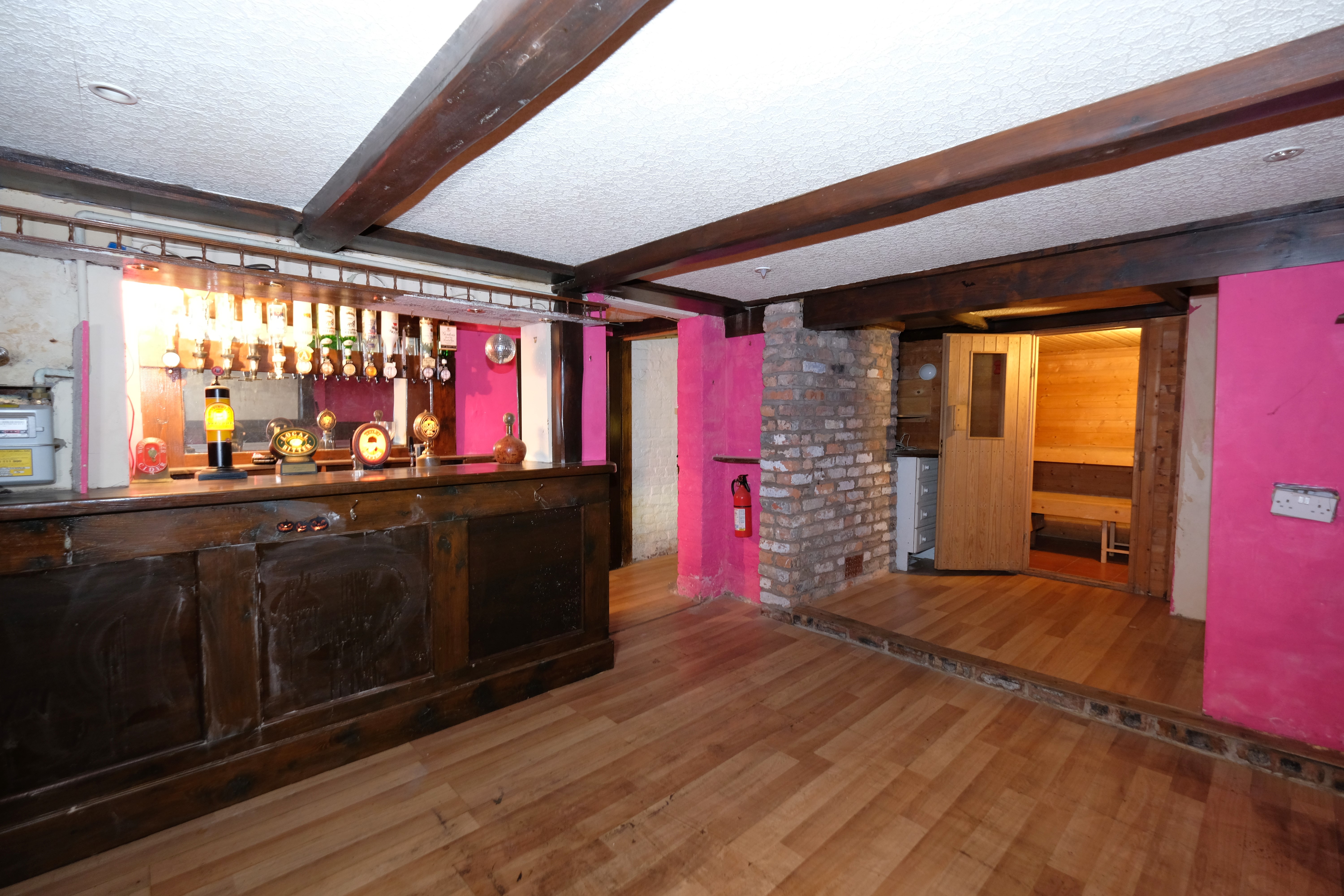 Featuring a full working bar. Complete with ceiling spotlights and laminate flooring.