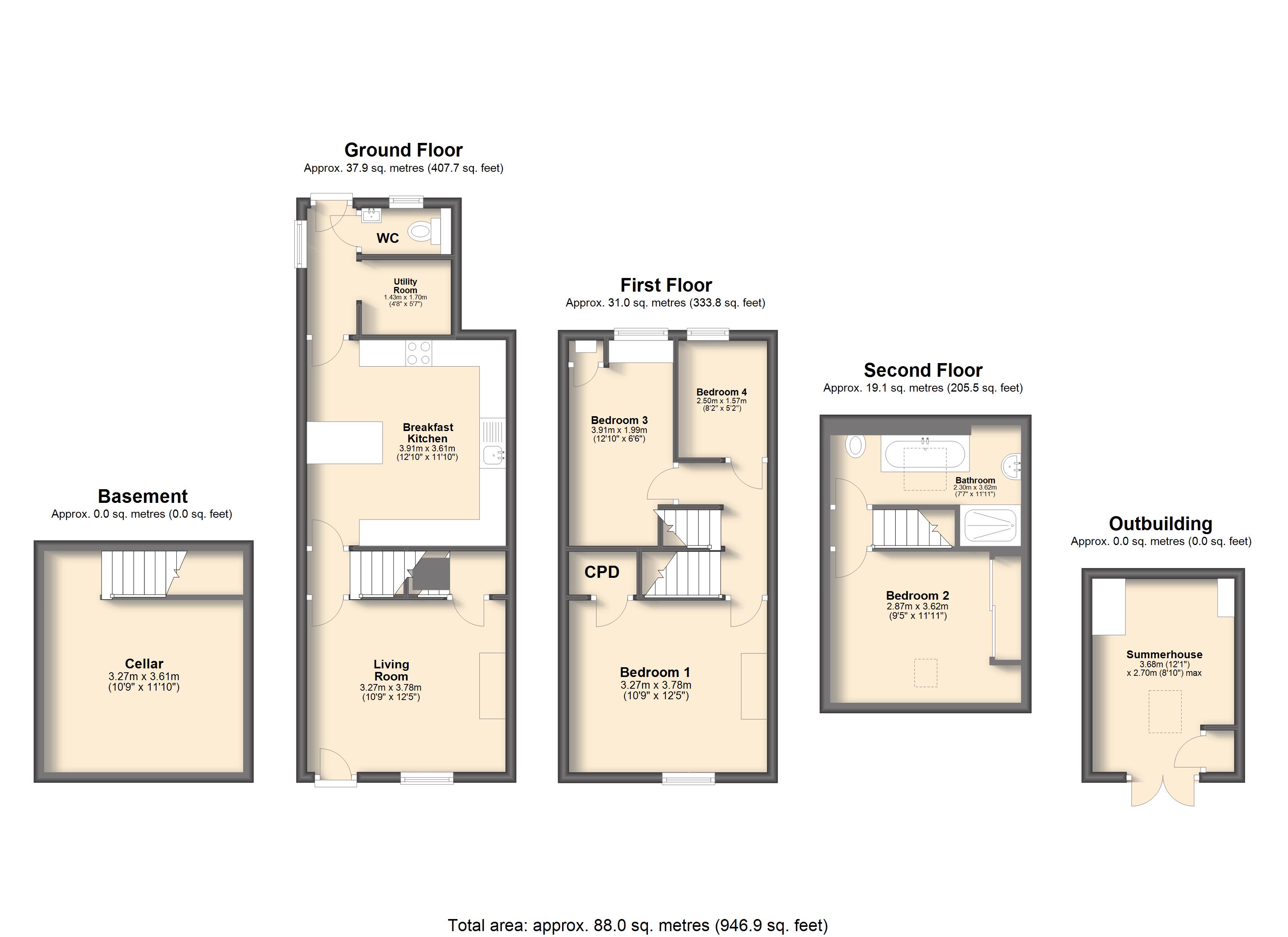 Across the upper two floors, you’ll find four generously sized bedrooms, each offering excellent flexibility. Whether you’re looking for family bedrooms or the ideal working-from-home environment, these rooms provide versatile solutions to meet a variety of lifestyle needs. The bedrooms are served by a fabulous family bathroom, designed with a contemporary four-piece suite that includes both a bath and a separate shower.