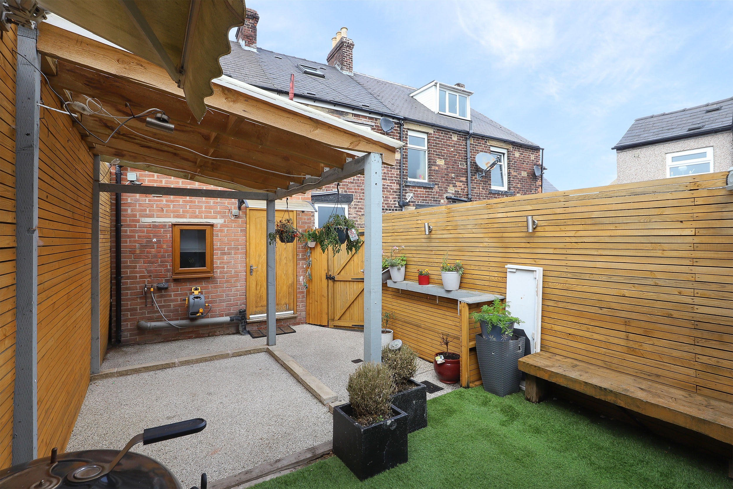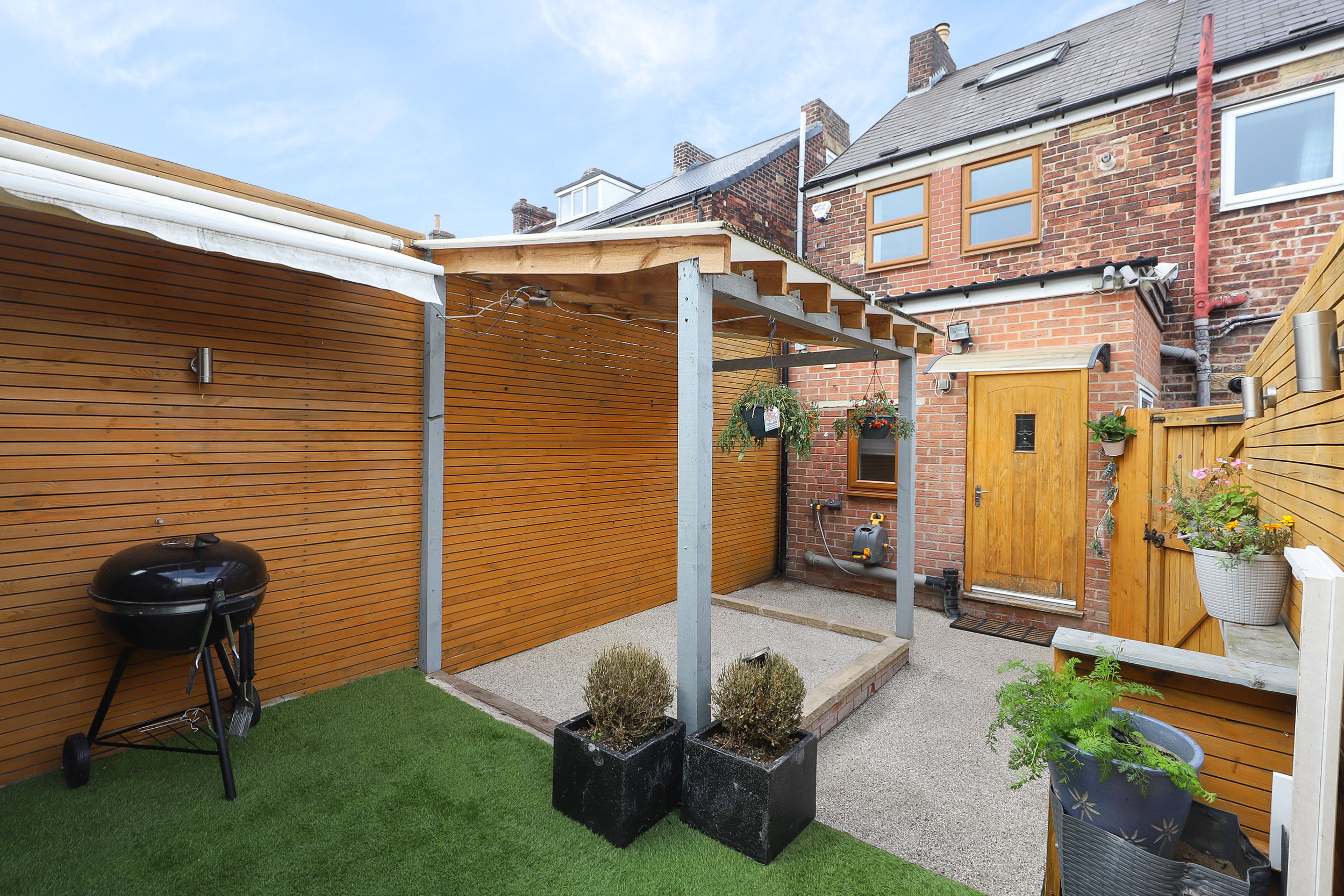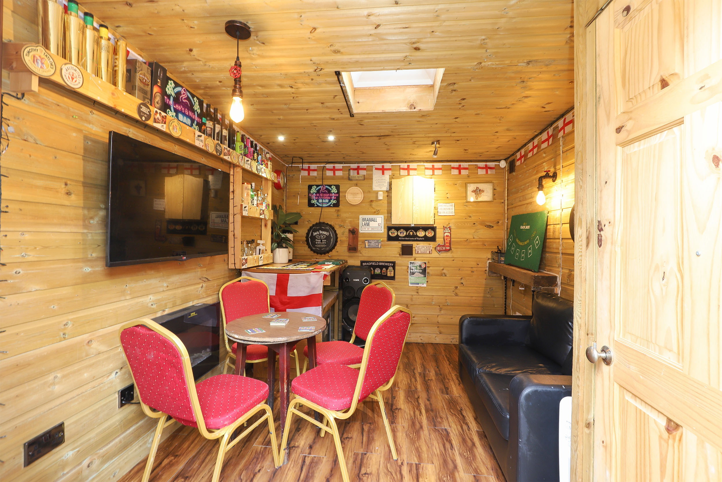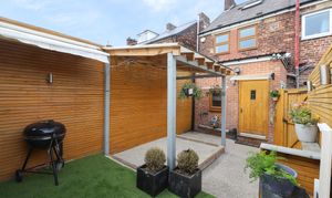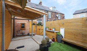 To the rear, an enclosed low-maintenance garden provides a private outdoor space, perfect for entertaining, relaxing, or enjoying warm summer days. A standout feature is the superb summerhouse.