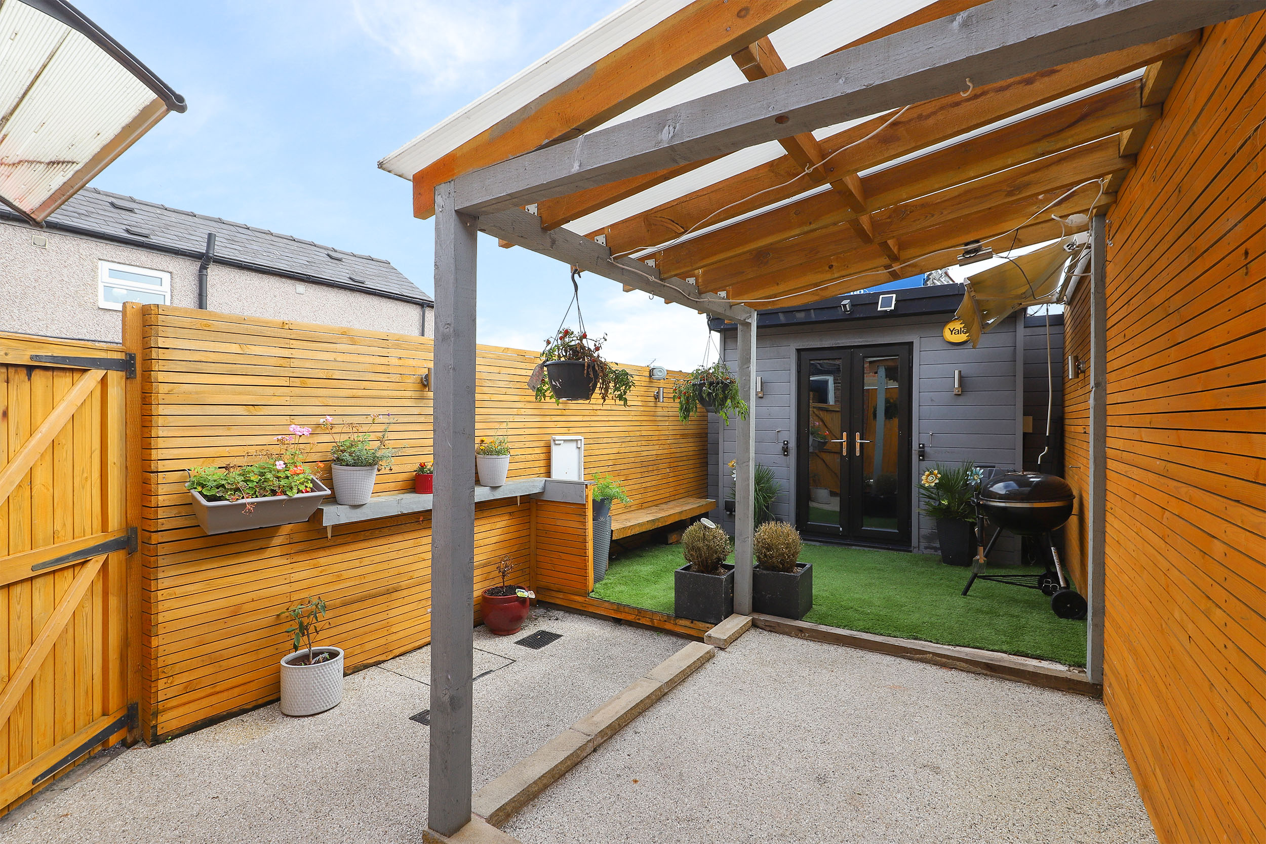 Outside, the home continues to impress. To the rear, an enclosed low-maintenance garden provides a private outdoor space, perfect for entertaining, relaxing, or enjoying warm summer days. A standout feature is the superb summerhouse, a highly versatile space that can be used as a home office, gym, studio, or playroom, offering year-round functionality. To the rear, there is on-road parking, adding to the practicality of the property.