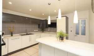 The ground floor is particularly impressive, starting with a stylish breakfast kitchen. Finished to a high standard, it hosts a complete range of integrated appliances, sleek cabinetry, and the comfort of underfloor heating, creating a space that is as practical as it is elegant. A light and airy living room further complements the floor, offering a welcoming retreat with plenty of room for relaxation. Additional day-to-day convenience is provided by a separate utility room and a ground-floor W/C.