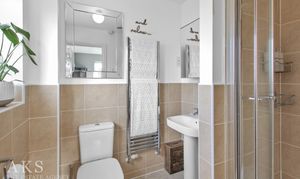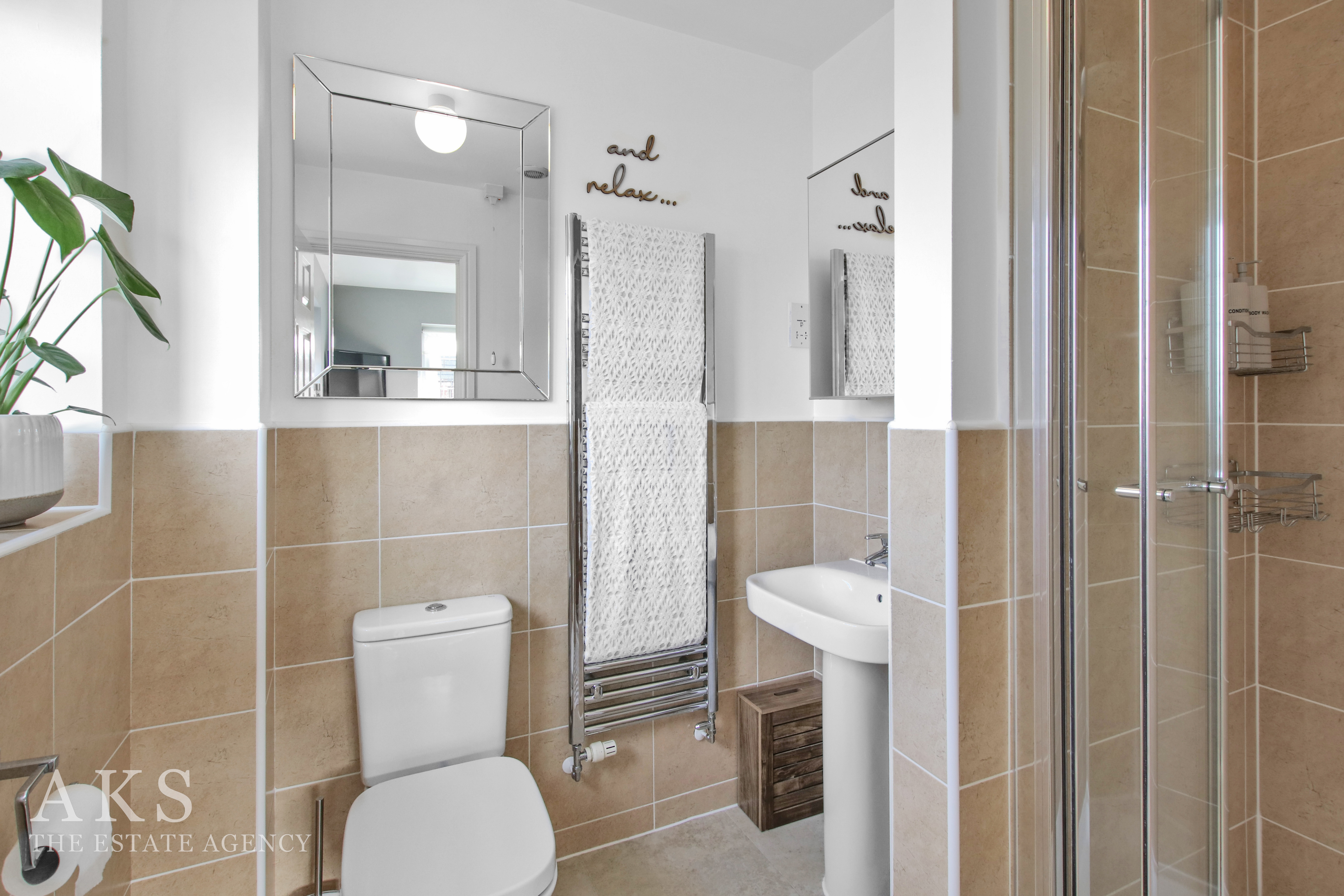 Upstairs, the thoughtful layout continues. All three bedrooms are well proportioned, which isn’t always easy to find. The main bedroom benefits from built-in wardrobes and its own en suite. The second bedroom is a spacious double, and the third bedroom is a generously sized single room.