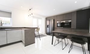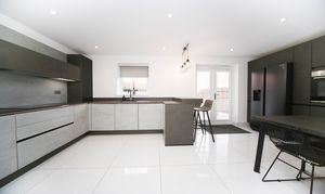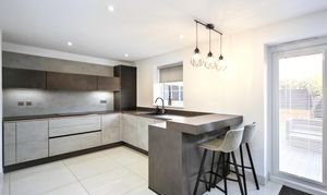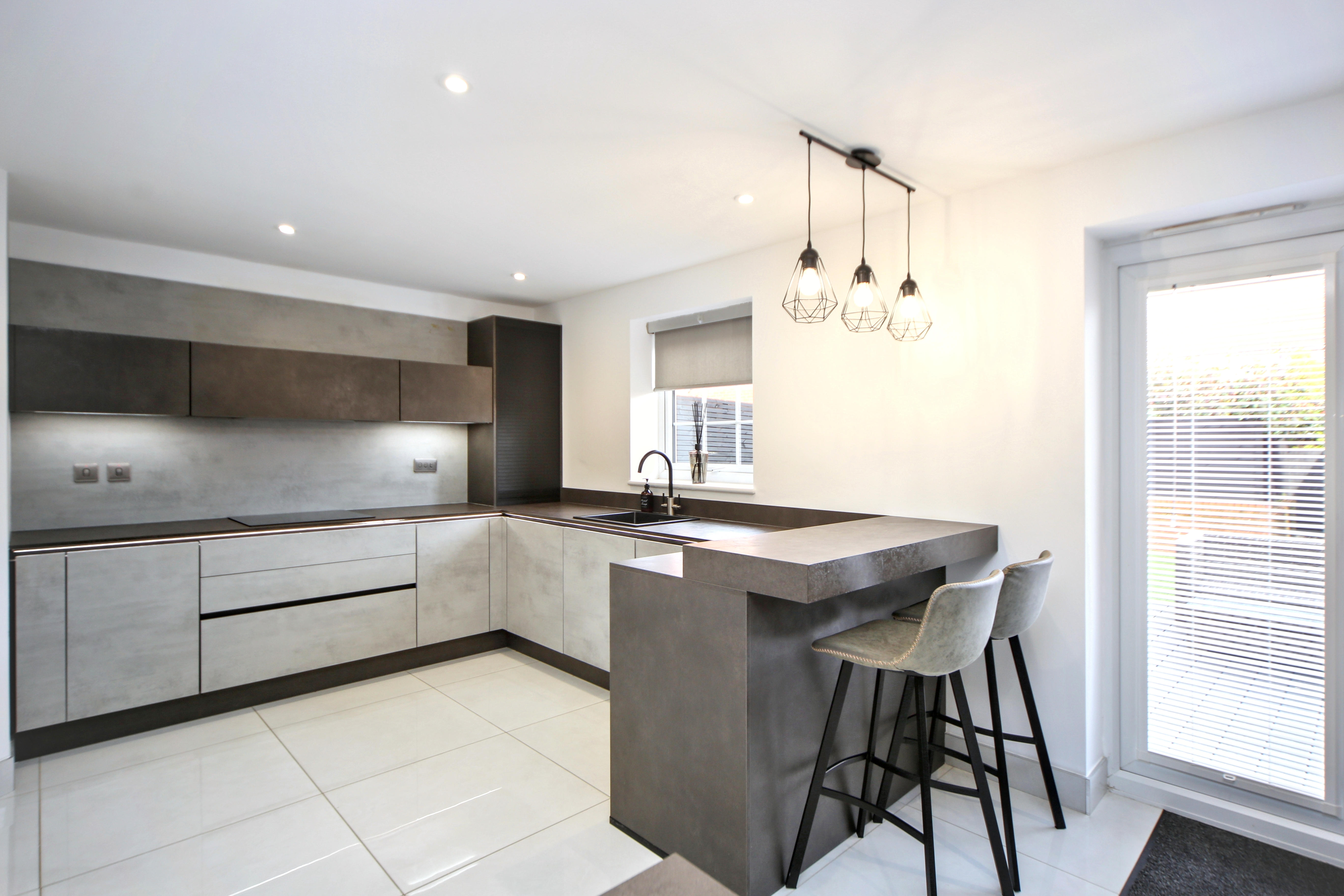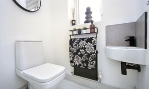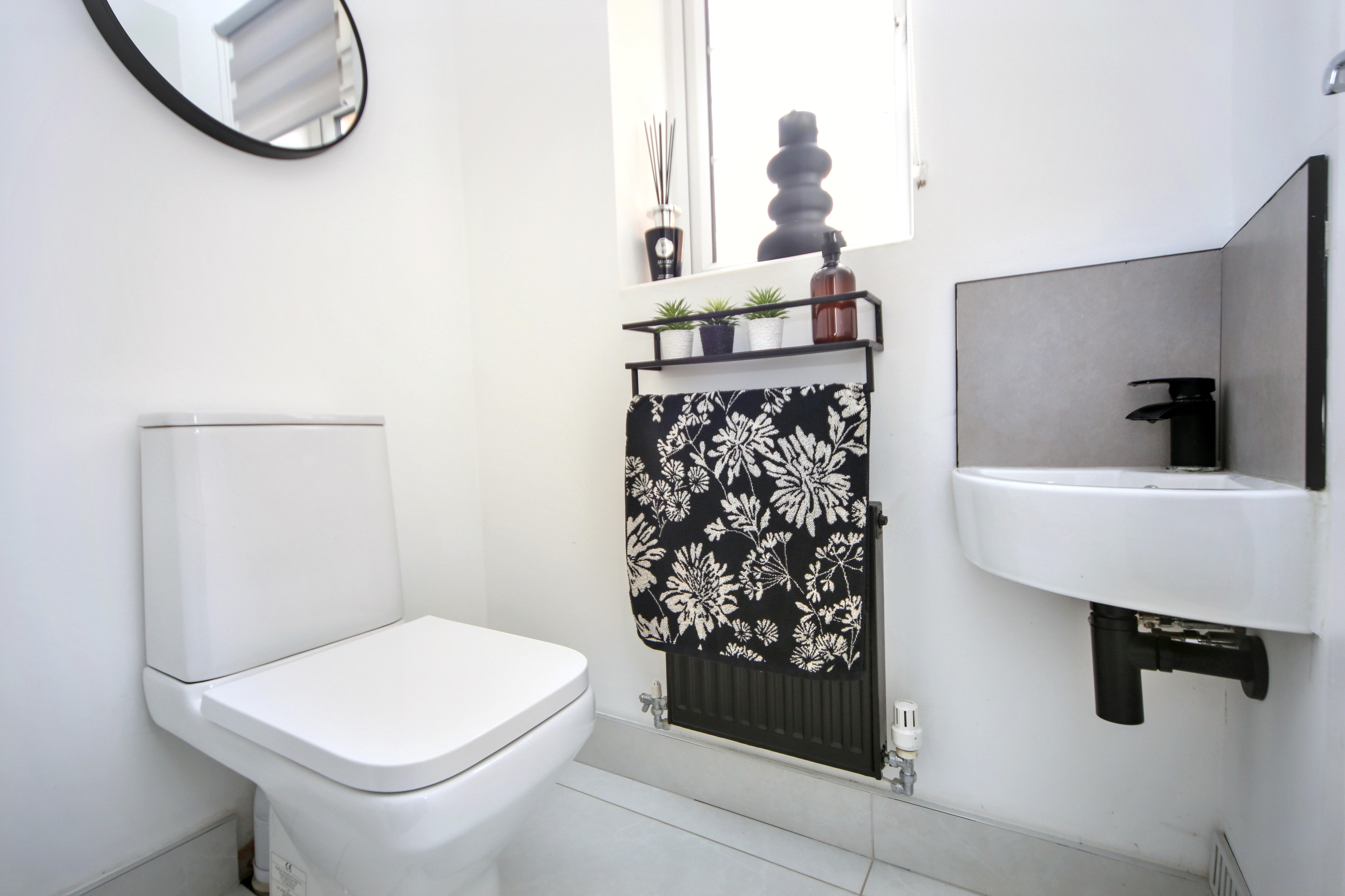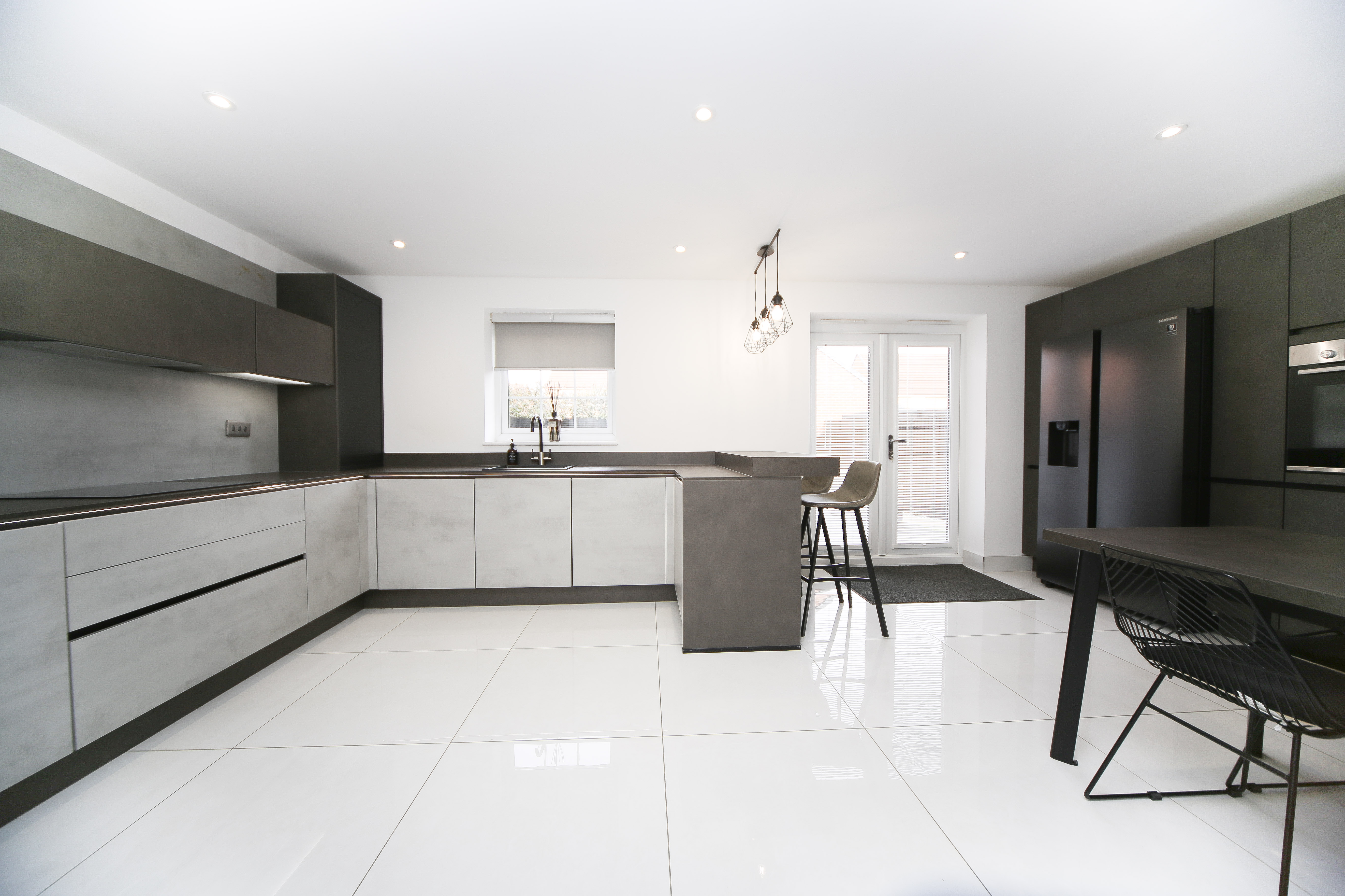 To the rear of the property, the standout feature is the large, contemporary kitchen/diner. Finished to an exceptional standard, this modern space is fitted with a range of integrated appliances and offers ample room for dining and entertaining. The layout is ideal for family living, with plenty of natural light and direct access to the garden. A separate utility room provides additional storage and practicality, alongside a convenient ground floor WC.