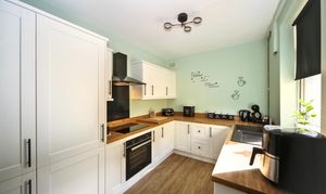 Upstairs, the property comprises two spacious double bedrooms, both well-presented and filled with natural light. A large family bathroom completes the first floor, offering plenty of space and comfort. Throughout, the home has been thoughtfully decorated, blending contemporary finishes with some original features that enhance its charm and appeal.