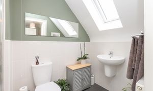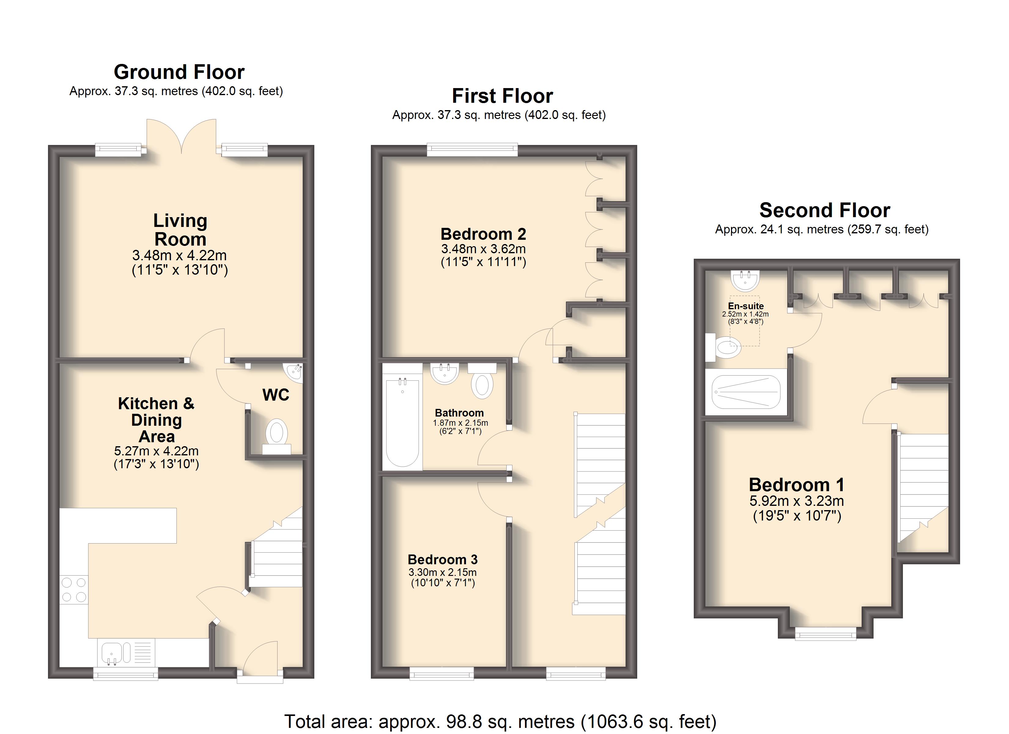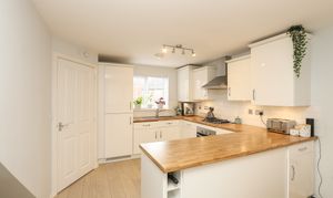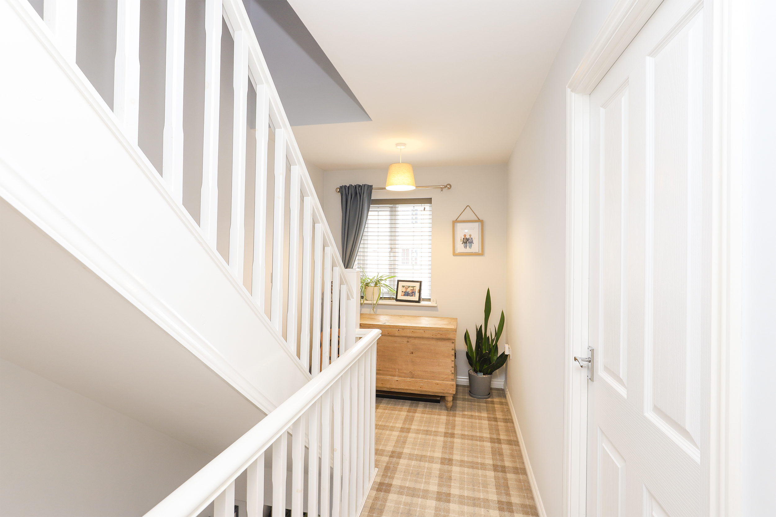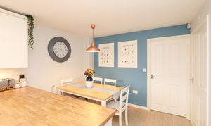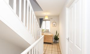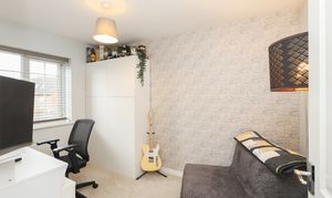 The three bedrooms are spread across the first and second floors, with the fabulous principal bedroom occupying the entire second floor, boasting an en-suite shower room and fitted wardrobes. The two further bedrooms on the first floor are equally well-appointed, with one enjoying fitted wardrobes and the other offering flexibility to the modern family as a home office space. A family bathroom complements the bedrooms with a three-piece suite, alongside a ground floor w/c adding to day to day convenience.