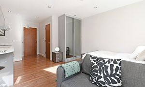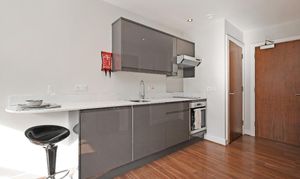 This stylish, fully furnished studio is perfect for professionals, postgraduates, or students seeking modern, low-maintenance living. Designed with comfort and convenience in mind, it features a high-gloss kitchen with granite worktops and integrated appliances including a washer/dryer and dishwasher. You'll also enjoy a wall-mounted smart TV, high-speed Wi-Fi, and a beautifully tiled shower room. With energy-efficient features like LED lighting, double glazing, and electric heating, this studio blends style with smart, sustainable living.