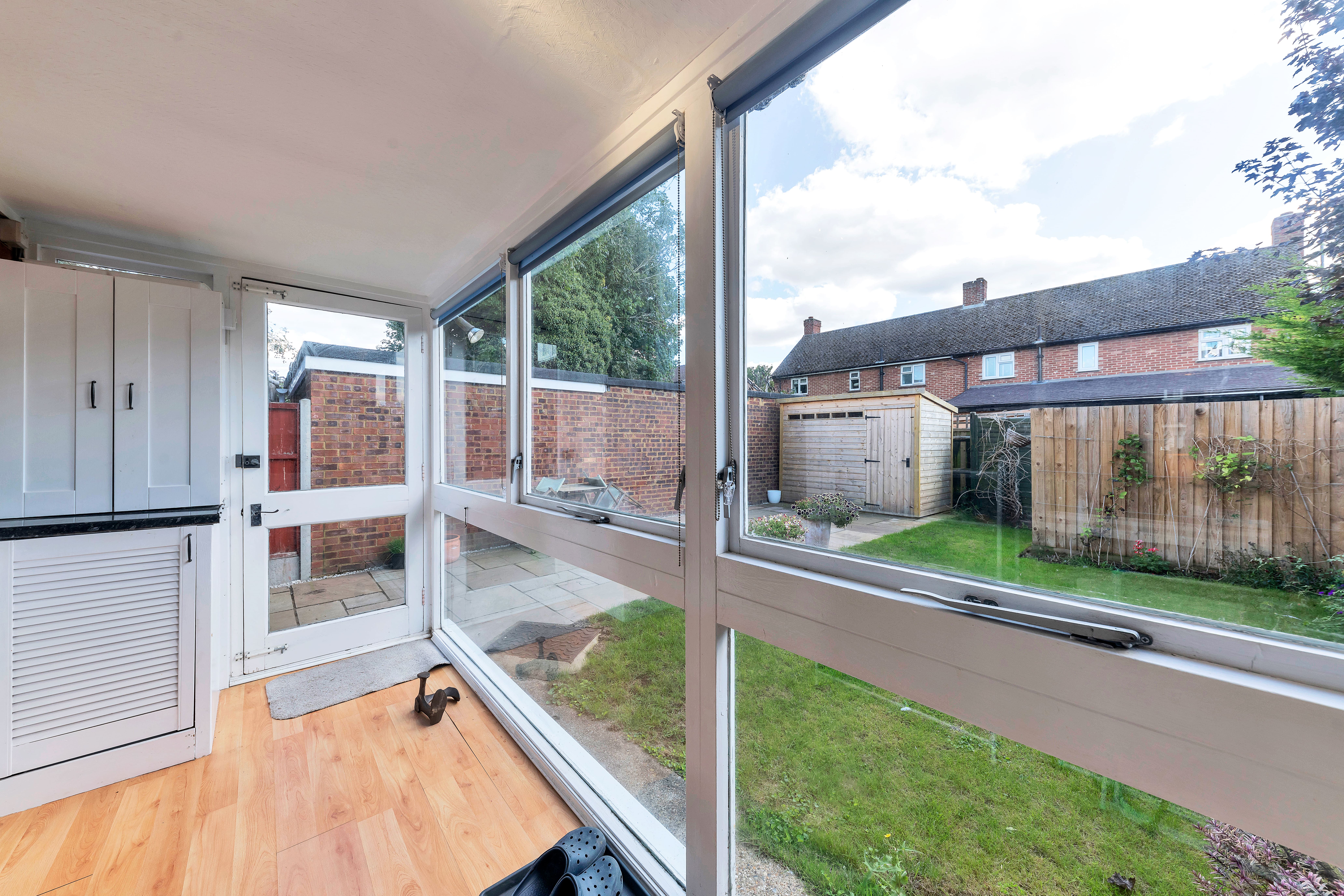 Outside, to the rear, the garden is a very good size, fully enclosed by fencing and brick walls and offering a very pretty space to sit and relax after a busy day. The garden is laid to both lawn and paved patio, providing ample space for garden furniture, entertaining guests and enjoying meals al fresco. There are established borders and beds, full of plants, flowers and shrubs, and access to a large shed.