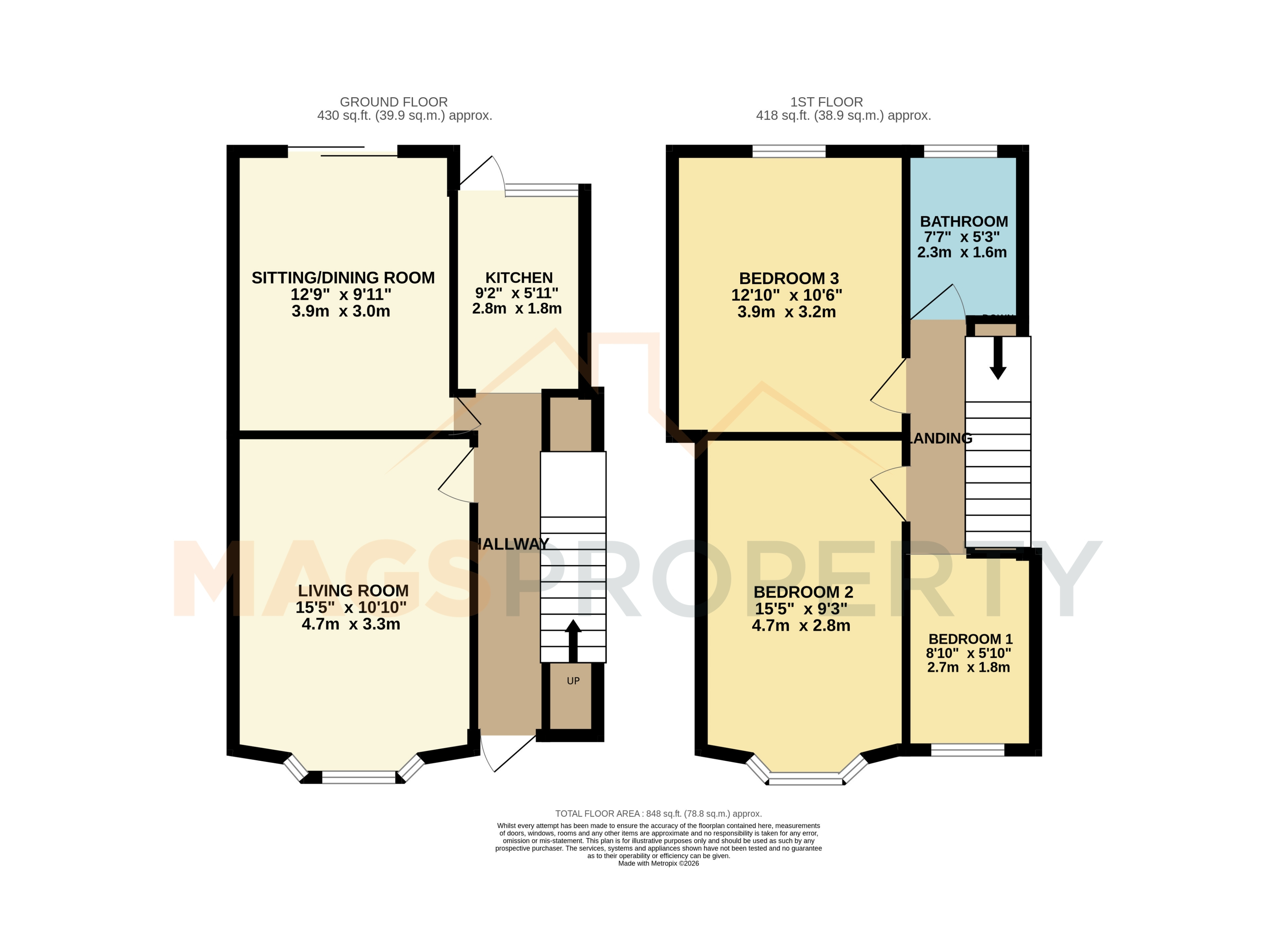 - Approx Sq Feet: 848 sqft