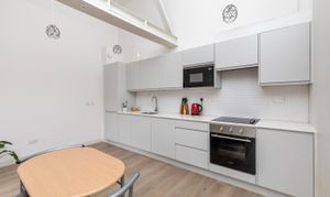 The accommodation comprises: entrance hallway with airing/utility cupboard with washer/dryer, sitting/kitchen/dining room with feature vaulted ceilings, the kitchen is fitted with an attractive range of Italian gloss units, Quartz work surfaces and integrated appliances which includes induction hob, oven, dishwasher, microwave and fridge/freezer. There is a spacious double bedroom and beautifully fitted shower room.