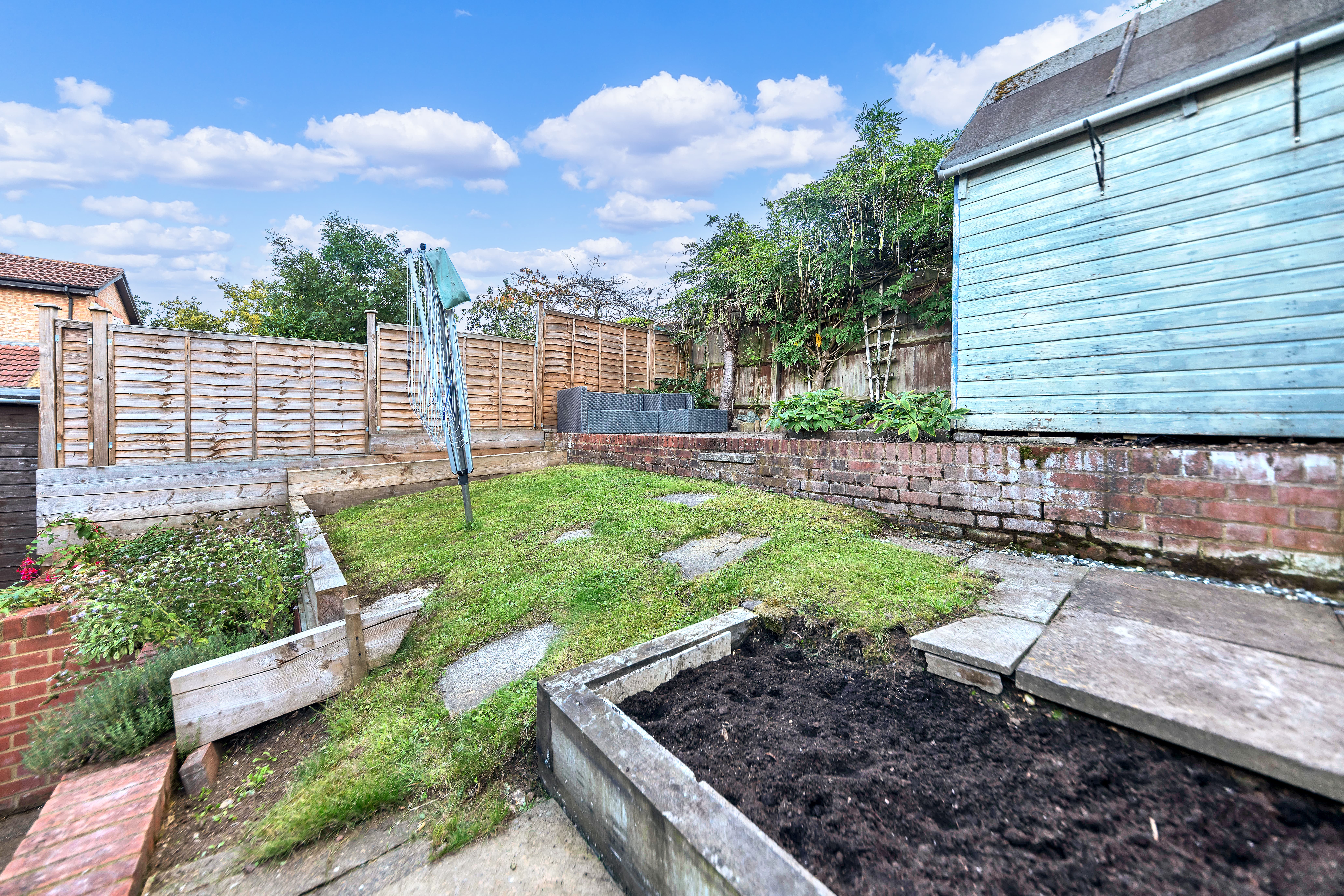 Outside, to the rear, the tiered garden is a good size, fully enclosed by fencing, and offering a lovely space to sit and relax on warmer days. It is laid mainly to lawn, with steps leading down to a paved patio area by the house, providing space for a range of garden furniture, enjoying family meals and entertaining guests. There are well-maintained beds full of colourful plants and shrubs, vegetable planters, access to a large shed, a further seating area at the top of the garden, and scope for new owners to put their own stamp on things.