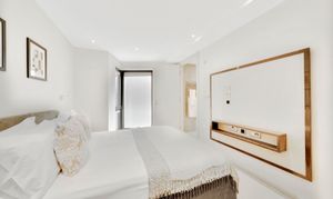 The apartment has a spacious and inviting living room, flooded with natural light. The kitchen is well-equipped with built in appliances and plenty of storage space.