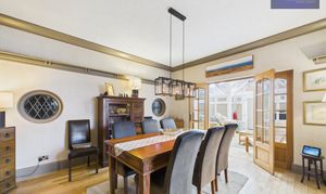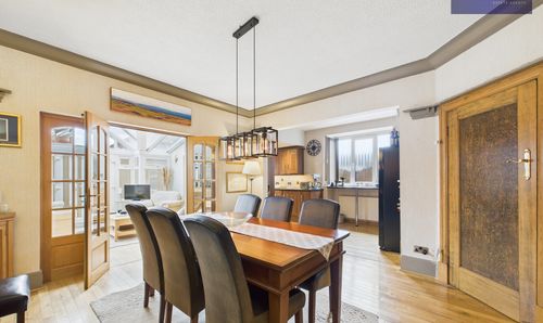 - Dining Room Leading Through To The Kitchen With Integrated Oven And Hob, Double Doors Opening Up To The Conservatory With Patio Doors Leading To The Garden