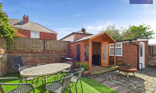 Enclosed south facing garden to the rear with artificial lawn, paving, side gate access, wooden summer house and access to the utility room/office.
