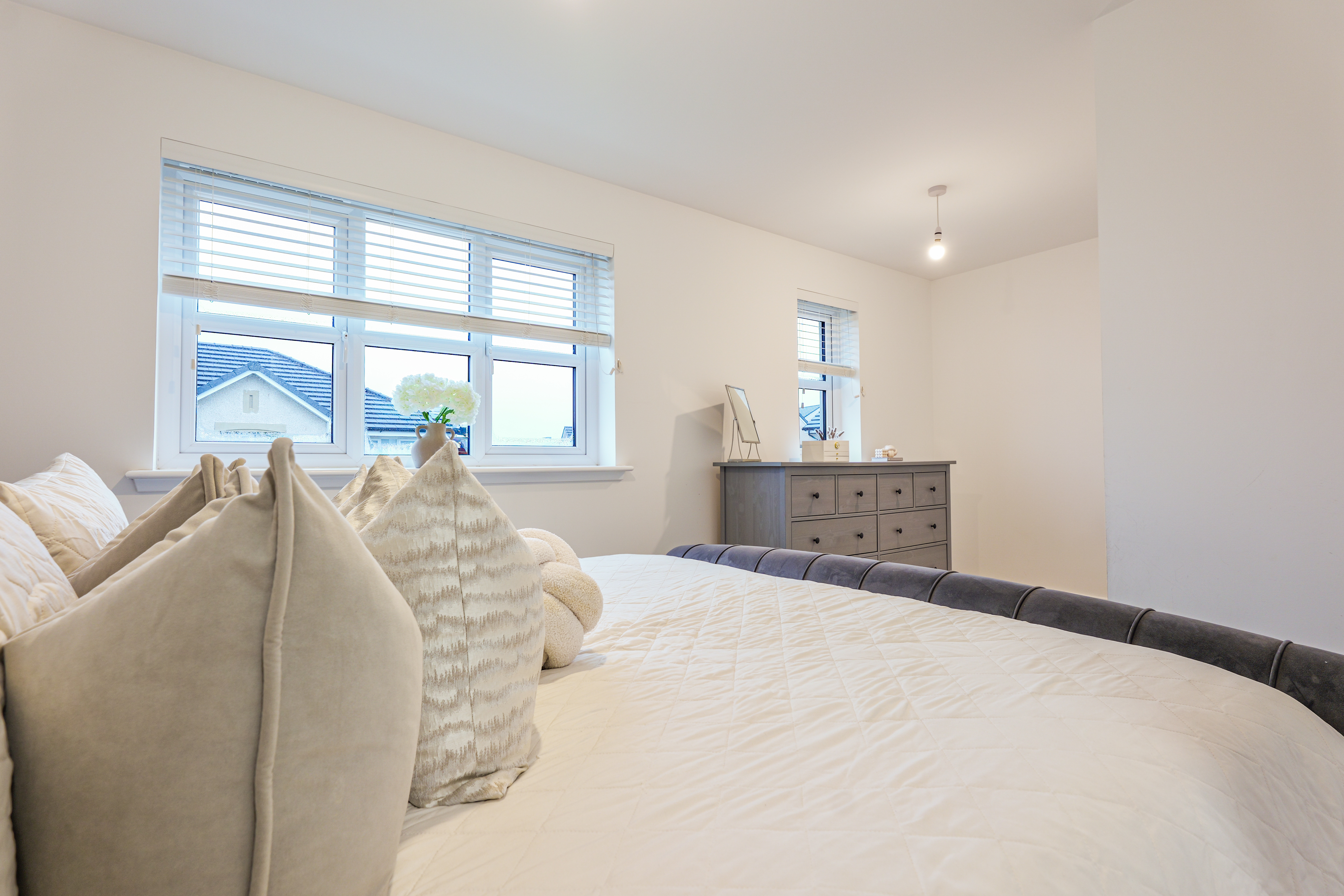 - Move-in to this stunning home which benefits from £20,000 + of upgraded extras including quality floorcoverings and blinds, fitted wardrobes in bedroom two, and tiled bathrooms.