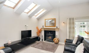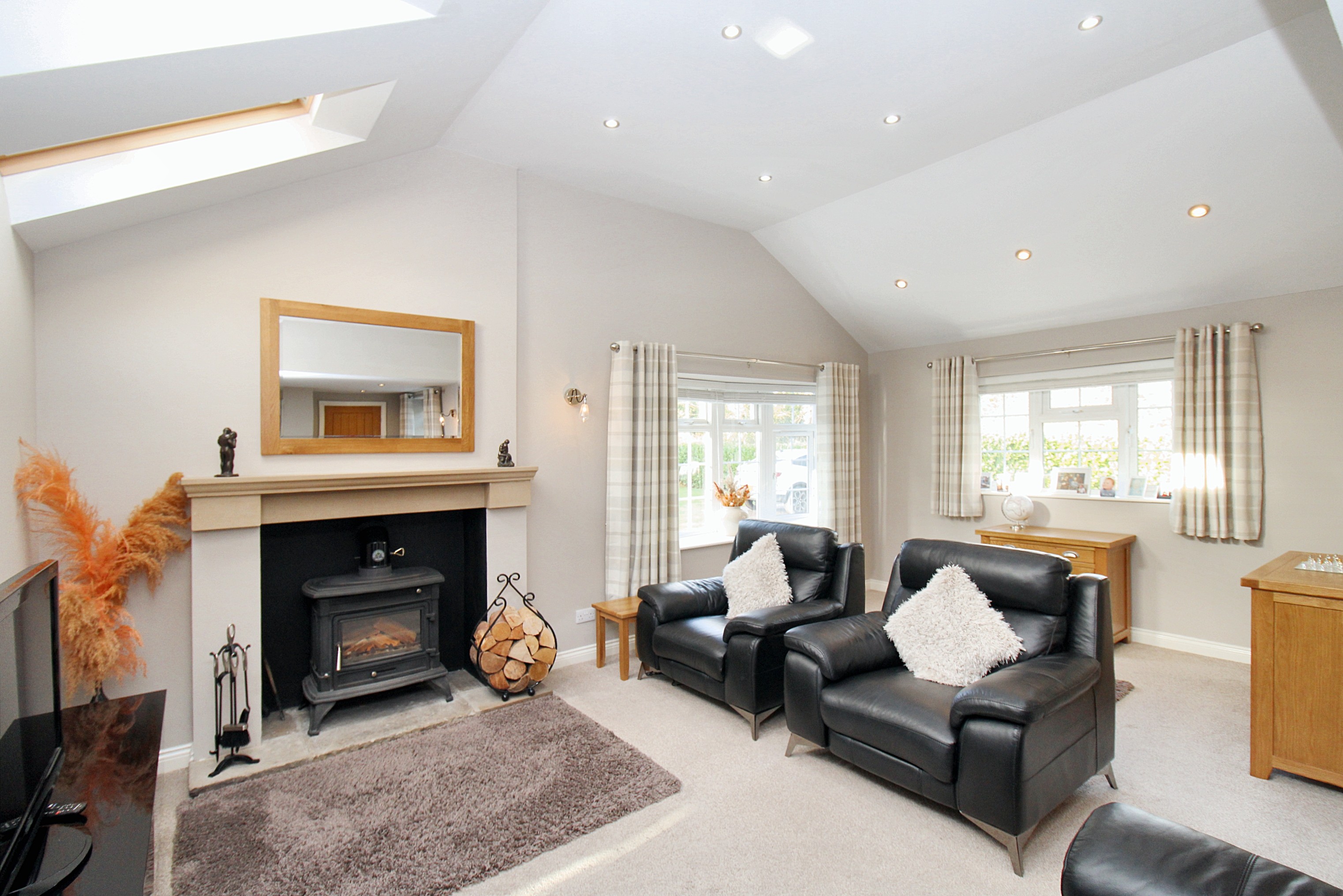 With carpet flooring, under floor heating, log burner, double glazed windows and spotlights.