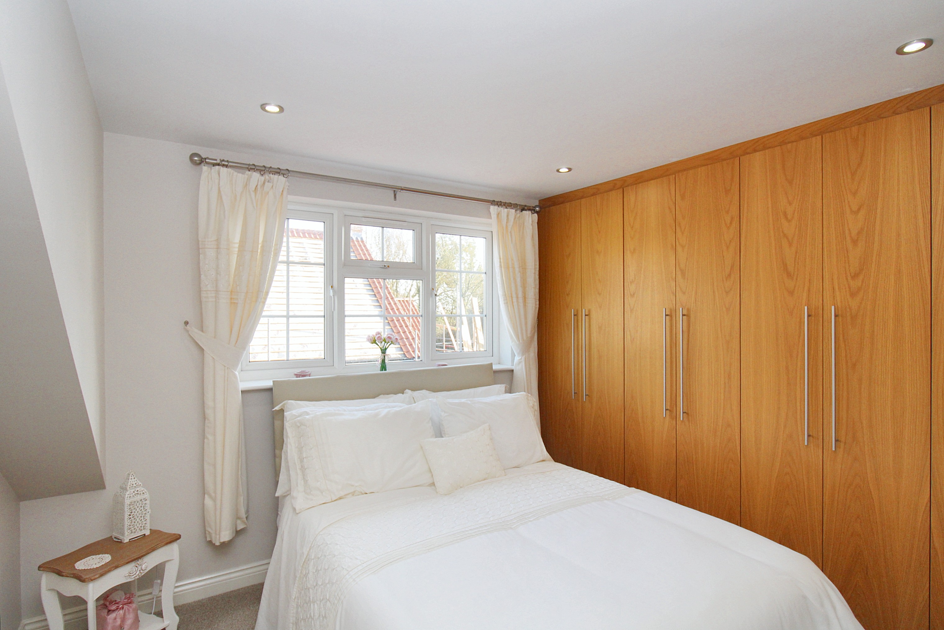 With carpet flooring, radiator, storage cupboard with an in built radiator, double glazed windows, spotlights and fitted wardrobes.