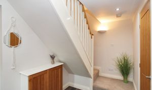 With LVT flooring, double glazed windows, storage cupboard, under floor heating, spotlights, door leading to kitchen/diner, door leading to lounge and stairs leading to the first floor.