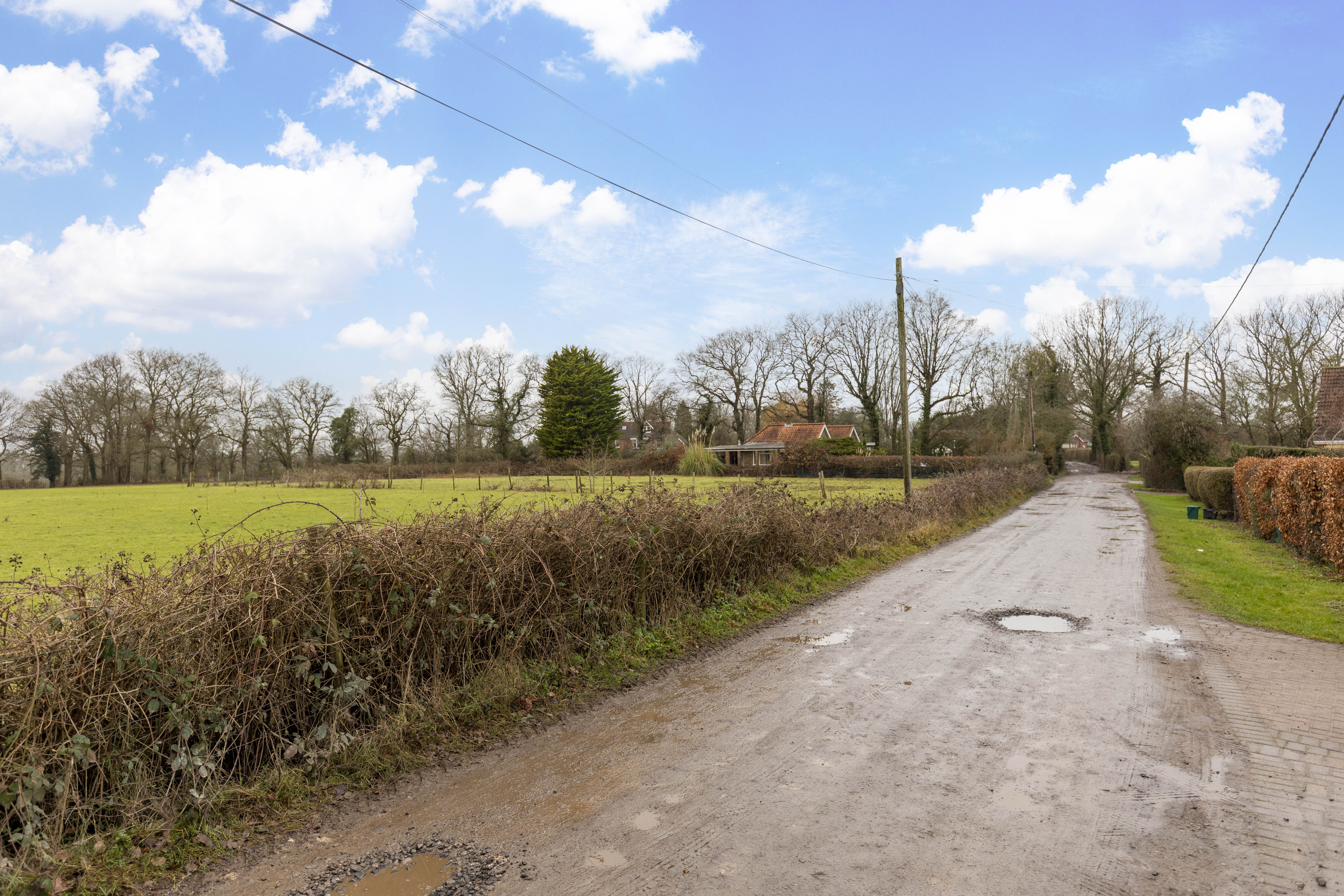 Approaching the property via the private road, the home is nestled away with a sizable frontage, parking and access to the home. Opposite the property is countryside, when partnered with the private lane gives an excellent feel of seclusion.