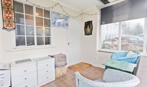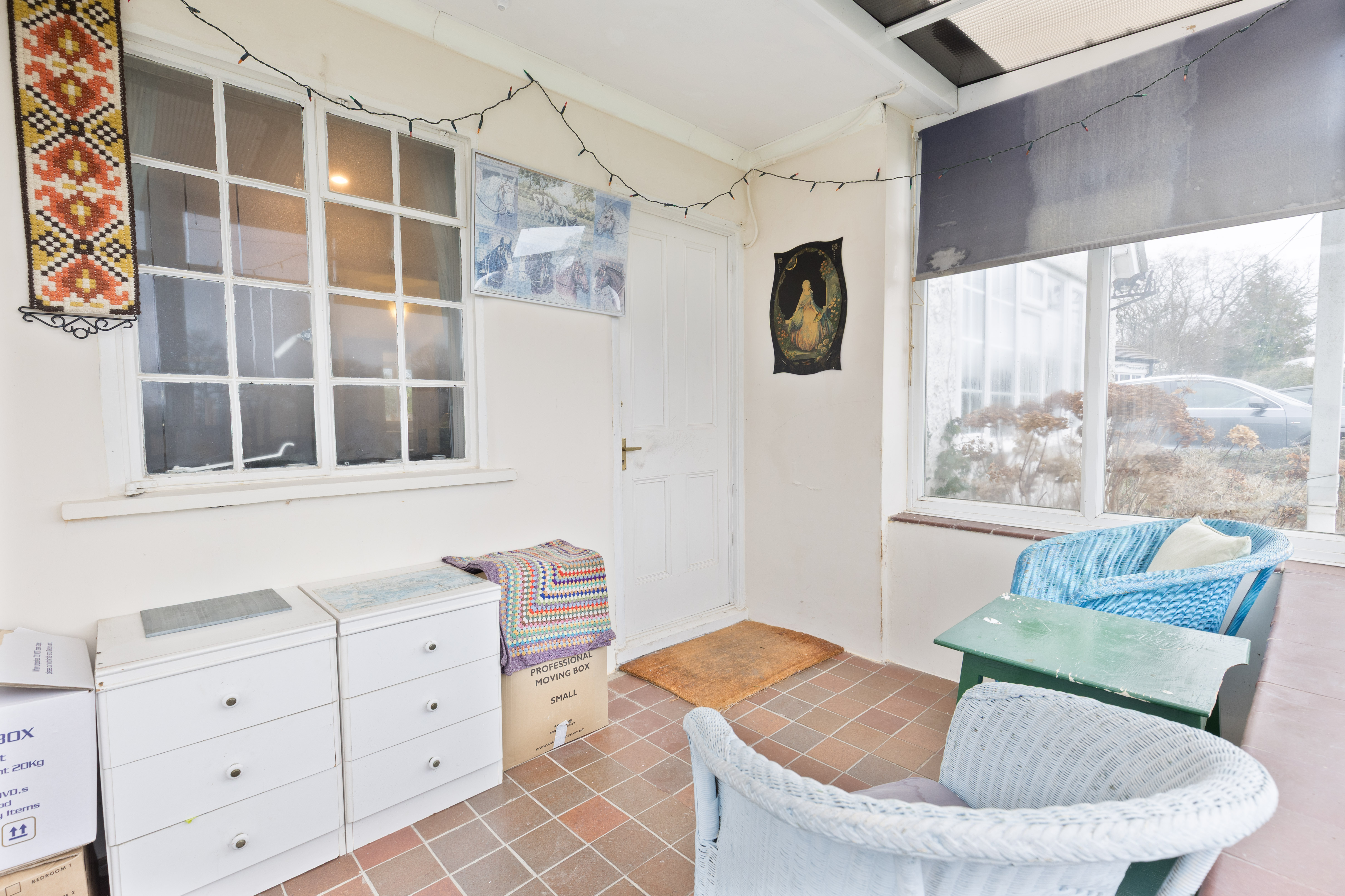 Entering the home, there is an porch with space for shoes and coats, with doors to the entrance hall. This is a lovely space with ample accommodation for shoes, coats and currently used as a small entertaining space, with doors to all rooms. The living room is a bright and airy space, with ample accommodation for large family sofas and furniture. There are also dual aspect windows flooding the room with light and giving lovely views of the frontage. One bedroom is to the front, with similar lovely views of the frontage, easily accommodating a double bed and furniture. The second bedroom is to the rear, with access to the conservatory. The second bedroom has ample space for a double bed and furniture, however could be better fitted as a living room or dining room, with the living room used as the additional bedroom. The kitchen needs a full overhaul, however has ample space for multiple wall and base units, small dining table. It also benefits from two storage areas and door to side.